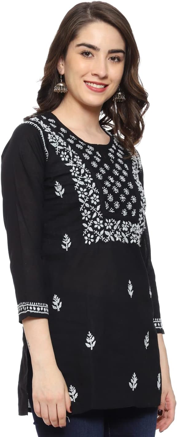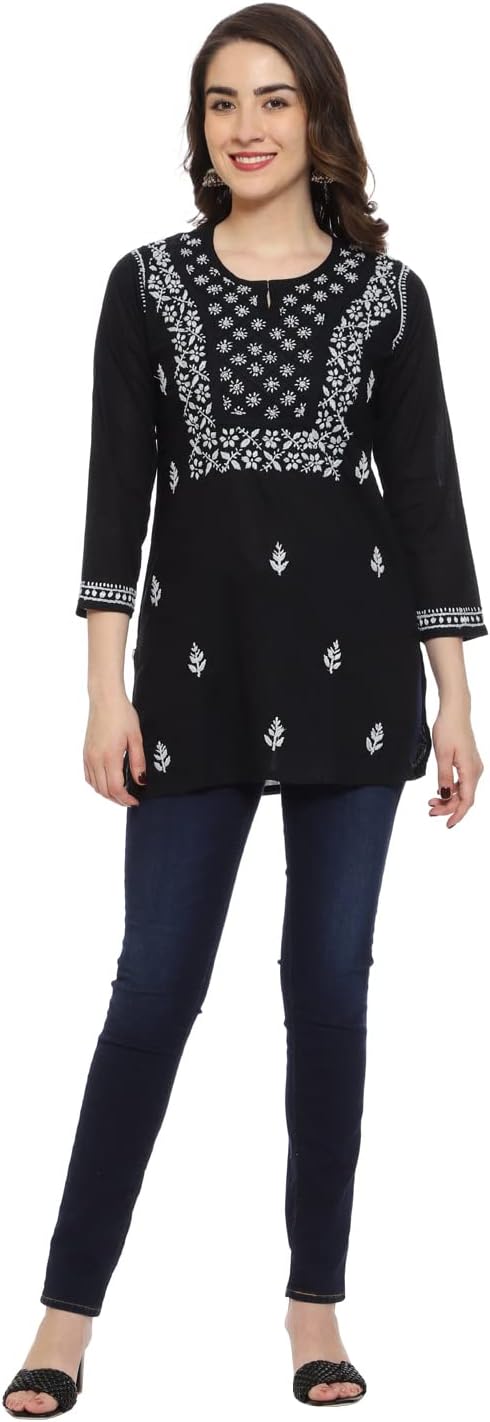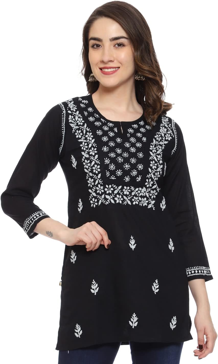 Chikan tops continue to be a significant trendsetter; they are loved by all, owing to their elegant and intricate look. This Black chikan top is perfect for every occasion
