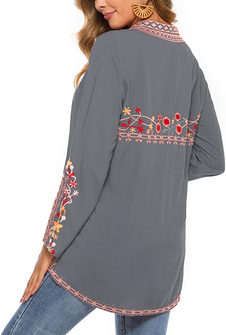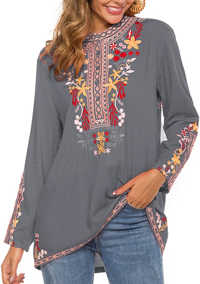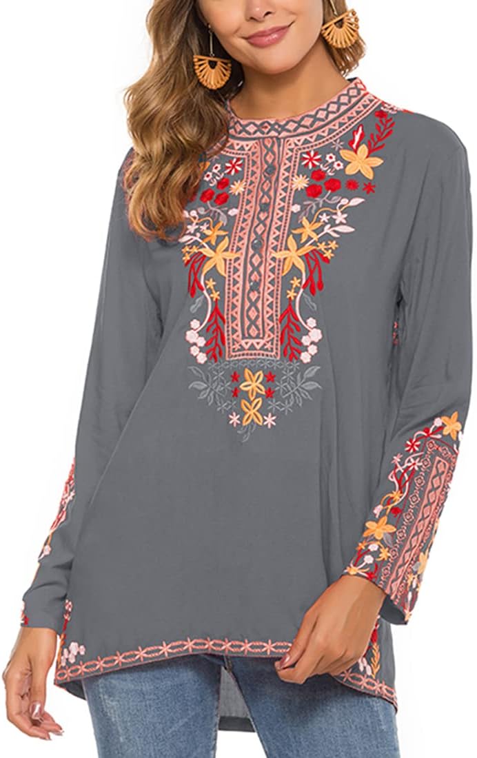AK Women’s Boho Embroidery Mexican Bohemian Tops Shirt Tunic Blouses