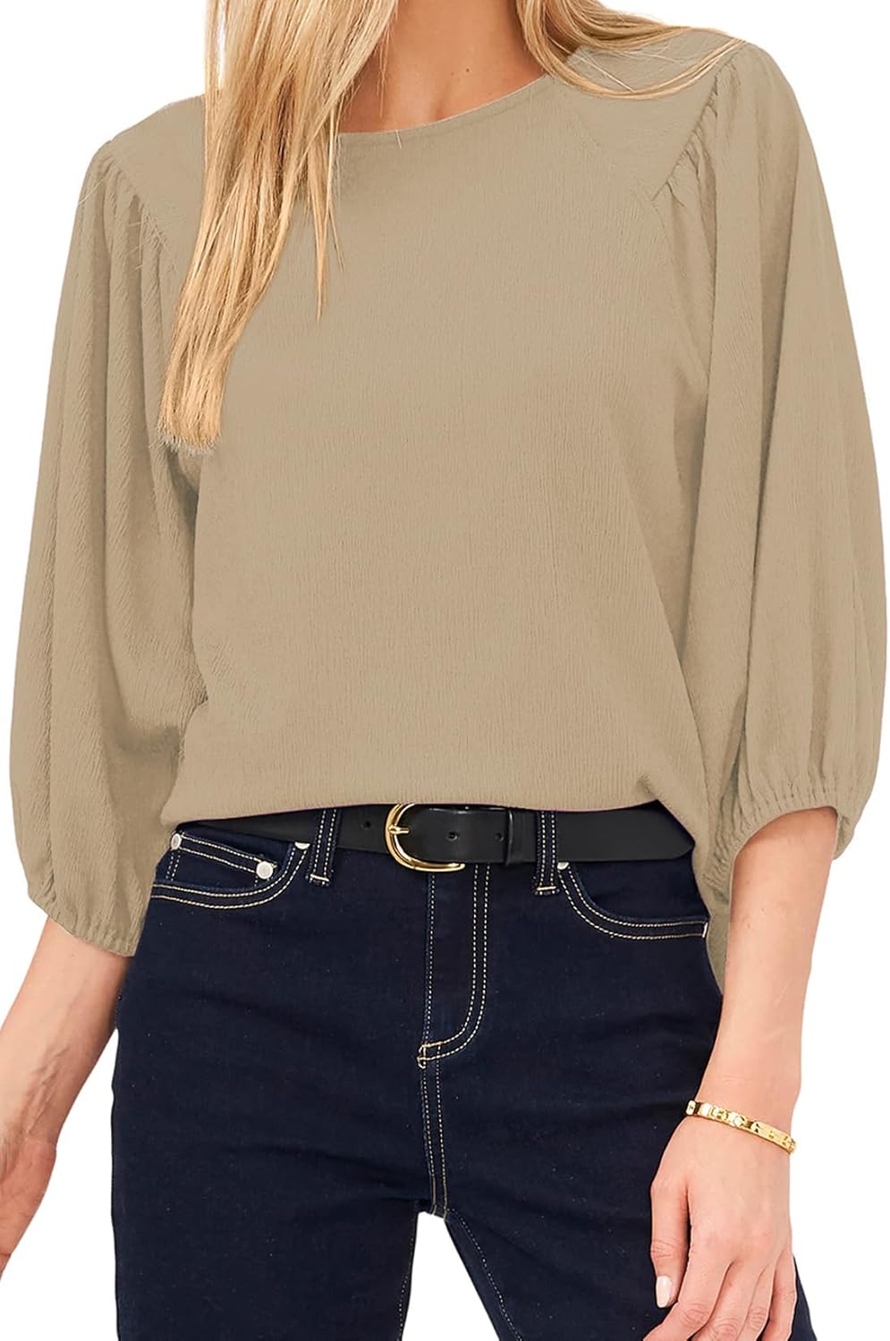 Embrace a stylish, dressy casual vibe with Allimy’s puff sleeve tops. The textured fabric ensures maximum comfort, while the 3/4 length sleeves add a modern, sophisticated touch to any outfit. These tops are a wardrobe essential for fall.