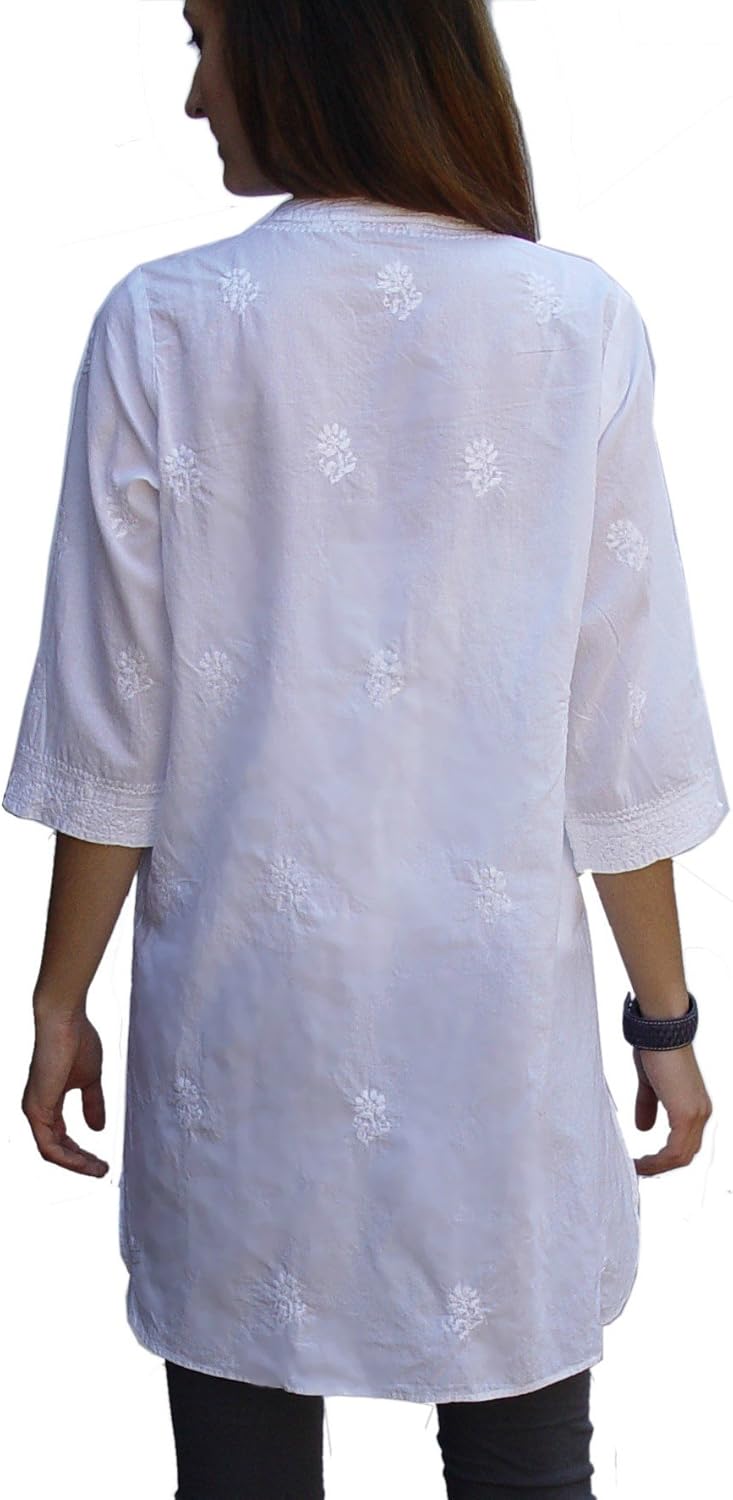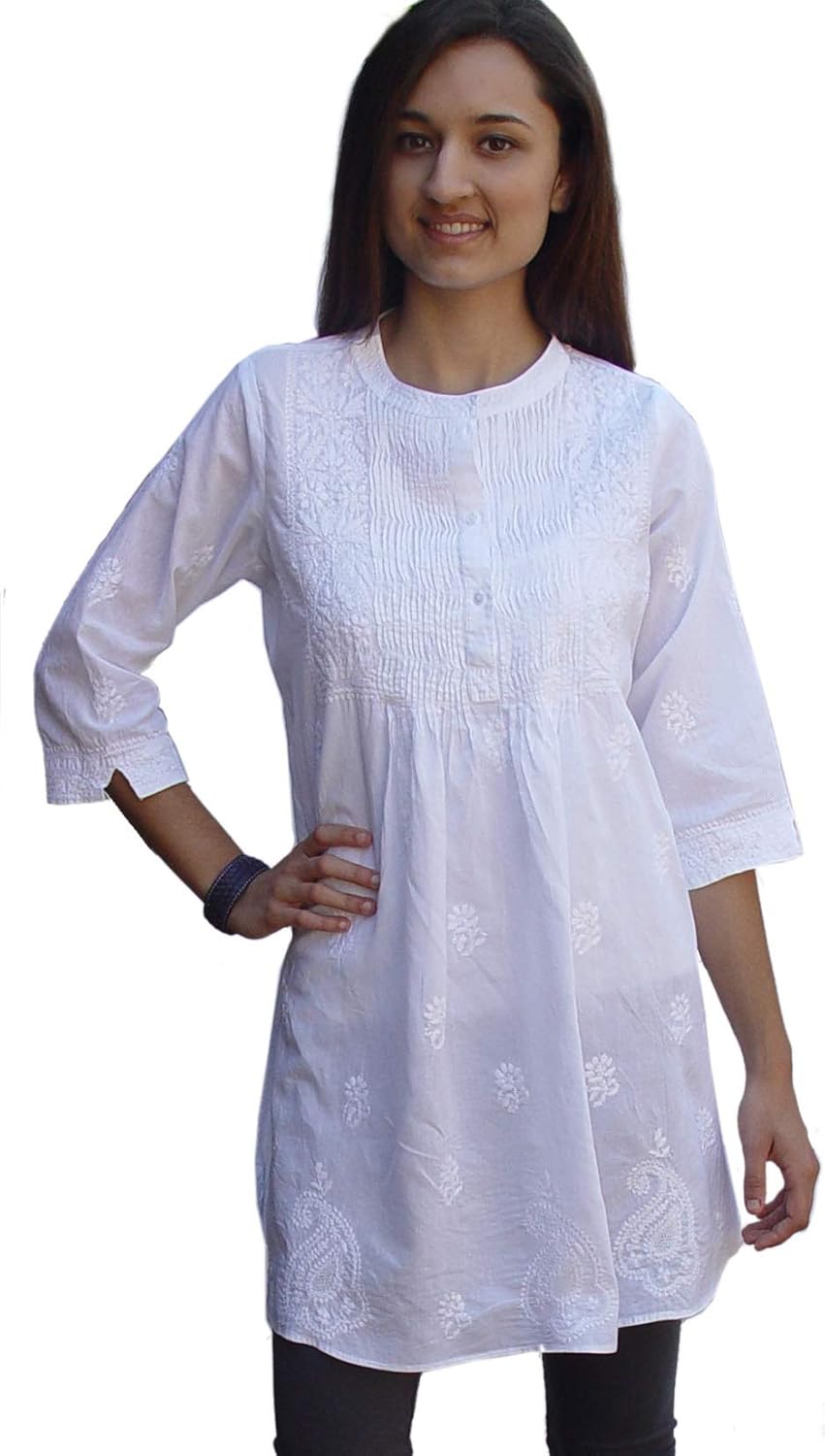 Ayurvastram presents the most gorgeous hand embroidered pure cotton hand embroidered tunics, with smocking details. This is a comfortable, versatile top, with exquisite and chic hand embroidery. Wear this with leggings or jeggings or an elegant, modern and ravishing look! …..PLEASE NOTE: We follow the Amazon Size chart. The most important measurement in a tunic is the chest measurement. Therefore, while ordering our tunics, please order the size that is closest to your chest size. For example, if you are a chest size of 40 inches, then the size that you should order is Size 14. Additionally, you may choose to wear this tunic fitting or loose, depending on your style. So here are the kurti chest sizes (NOT body chest sizes). Choose the kurti size you may want to wear: Size 0: Garment chest: 34 in Size 2: Garment chest: 35 in Size 4: Garment chest: 36 in; Size 6: Garment chest: 37 in; Size 8: Garment chest: 38 in; Size 10: Garment chest: 39 in; Size 12: Garment chest: 40.5-41 in; Size 14: Garment chest: 41.5-42.5 in Size 16: Garment chest: 43-44 in Size 18: Garment chest: 45-46 in Size 14W: Garment chest: 44-44.5 in Size 16W: Garment chest: 46.5-47.5 in Size 18W: Garment chest: 48.5-49.5 in Size 20W: Garment chest: 50.5-51.5 in Size 22W: Garment chest: 52.5-53.5 in Size 24W: Garment chest: 54.5-55.5 in Size 26W: Garment chest: 57.5 in Size 28W: Garment chest: 59-60 in Size 30W: Garment chest: 61-62 in Size 32W: Garment chest: 63-64 in Please do not hesitate to contact us, if you have any questions.