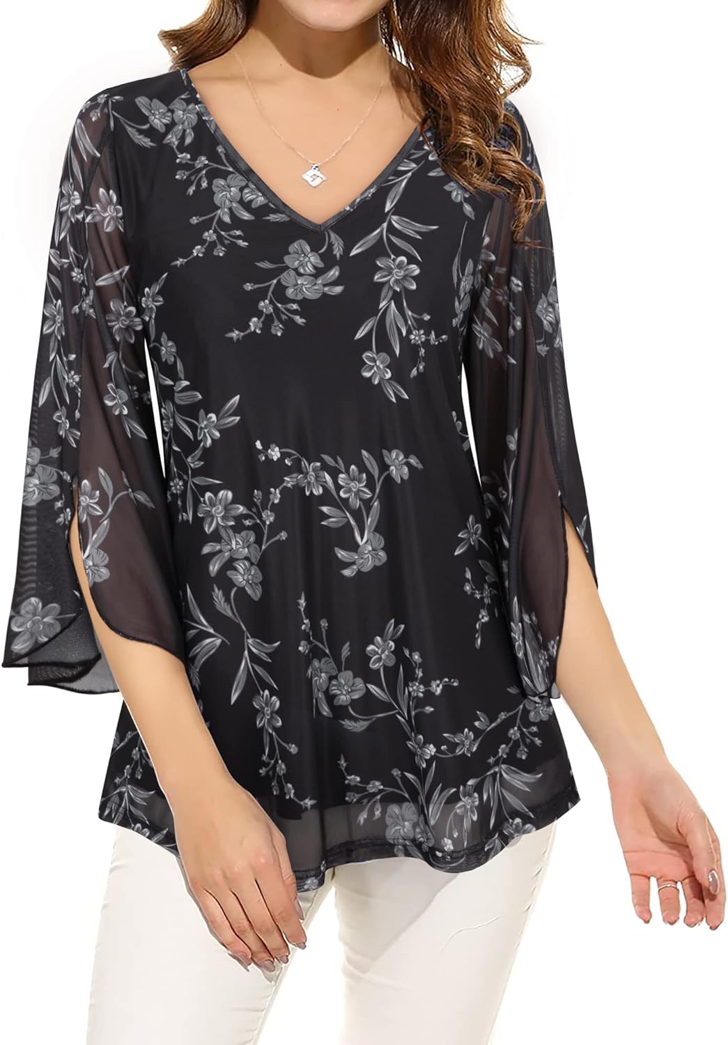 This Split 3/4 sleeve tunic top is designed to show off your best features.Easy to hide tummy with loose double layer