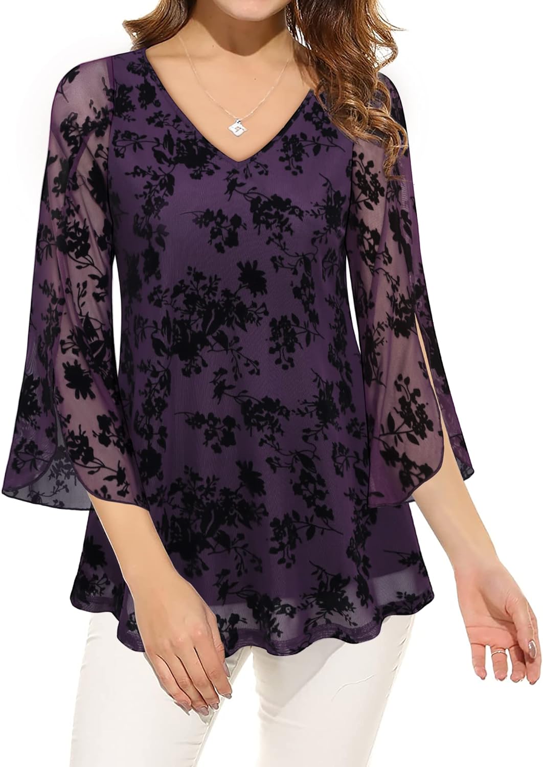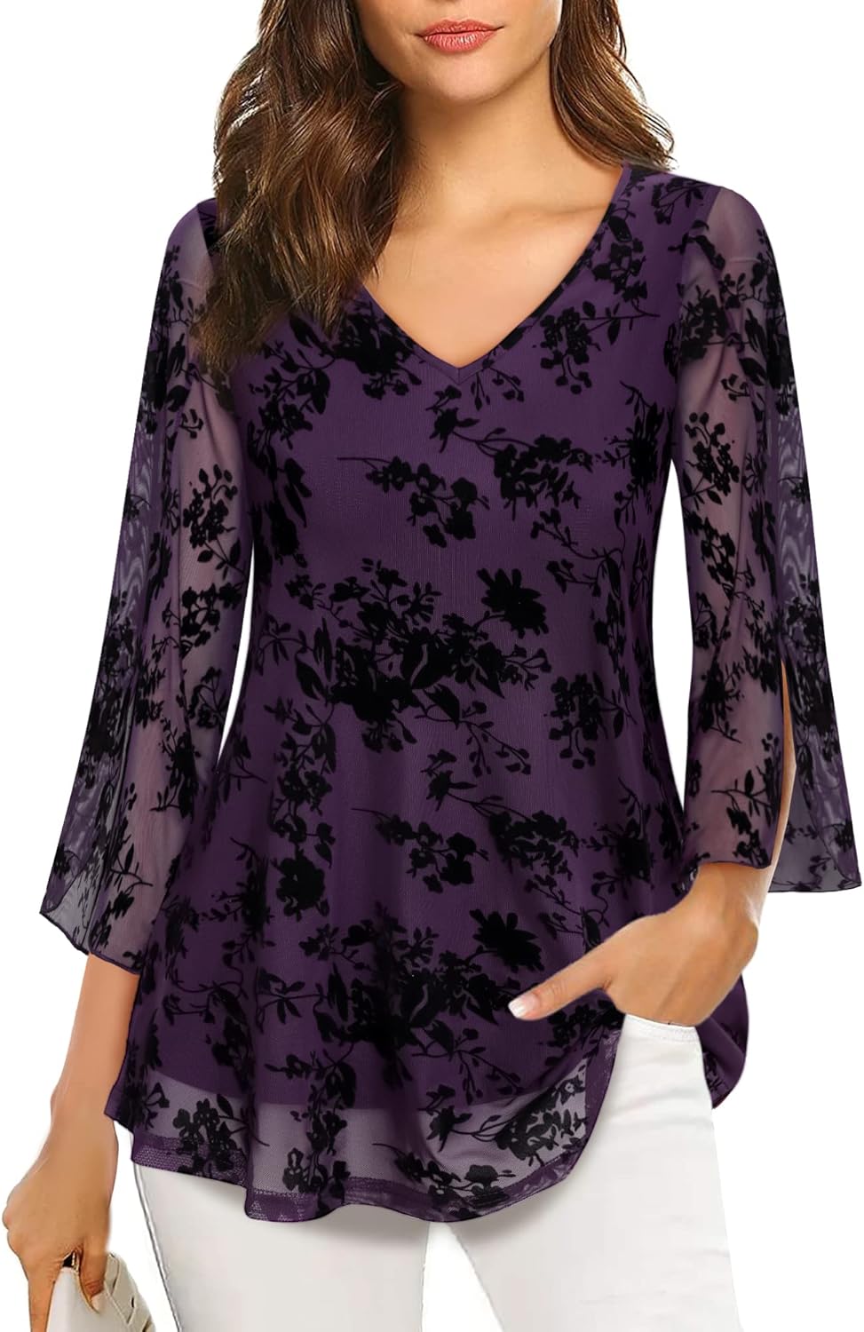 This Split 3/4 sleeve tunic top is designed to show off your best features.Easy to hide tummy with loose double layer
