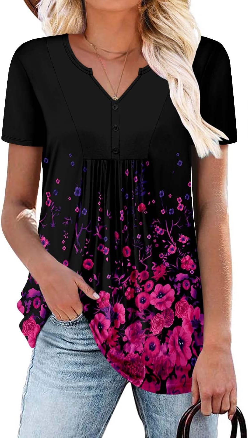 Fashion Features:This loose fit casual tunic blouse top features ,front COLOR decoration button,casual henley v neck,front&back pleated design,high low hem,short sleeve,tunic length,pull over,basic and stylish , A Must-Have Womens Tops in Your Wardrobe.