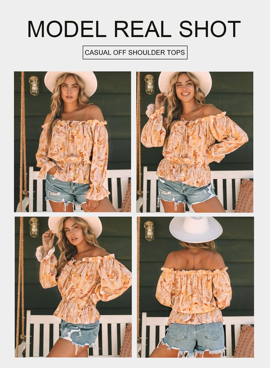 BLENCOT Summer Off Shoulder Tops SIZE(UNIT:INCH) LOW ELASTICITY