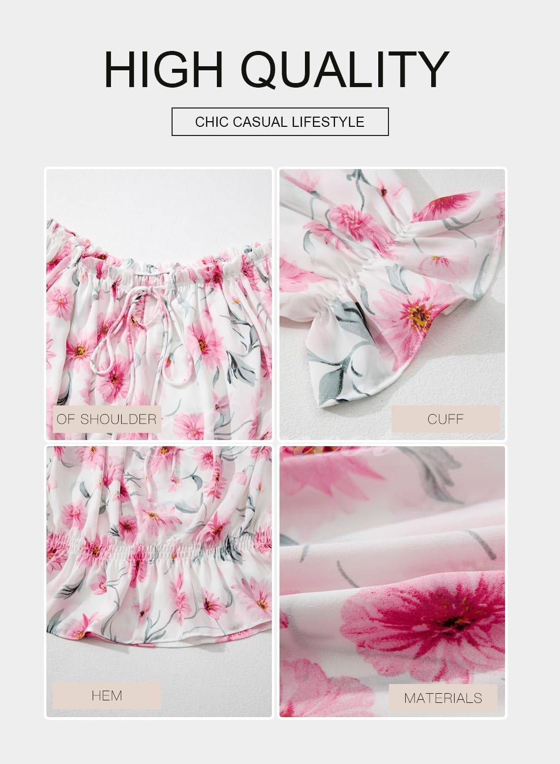 BLENCOT Women’s 3/4 Ruffle Sleeve Off Shoulder Chiffon Blouse
