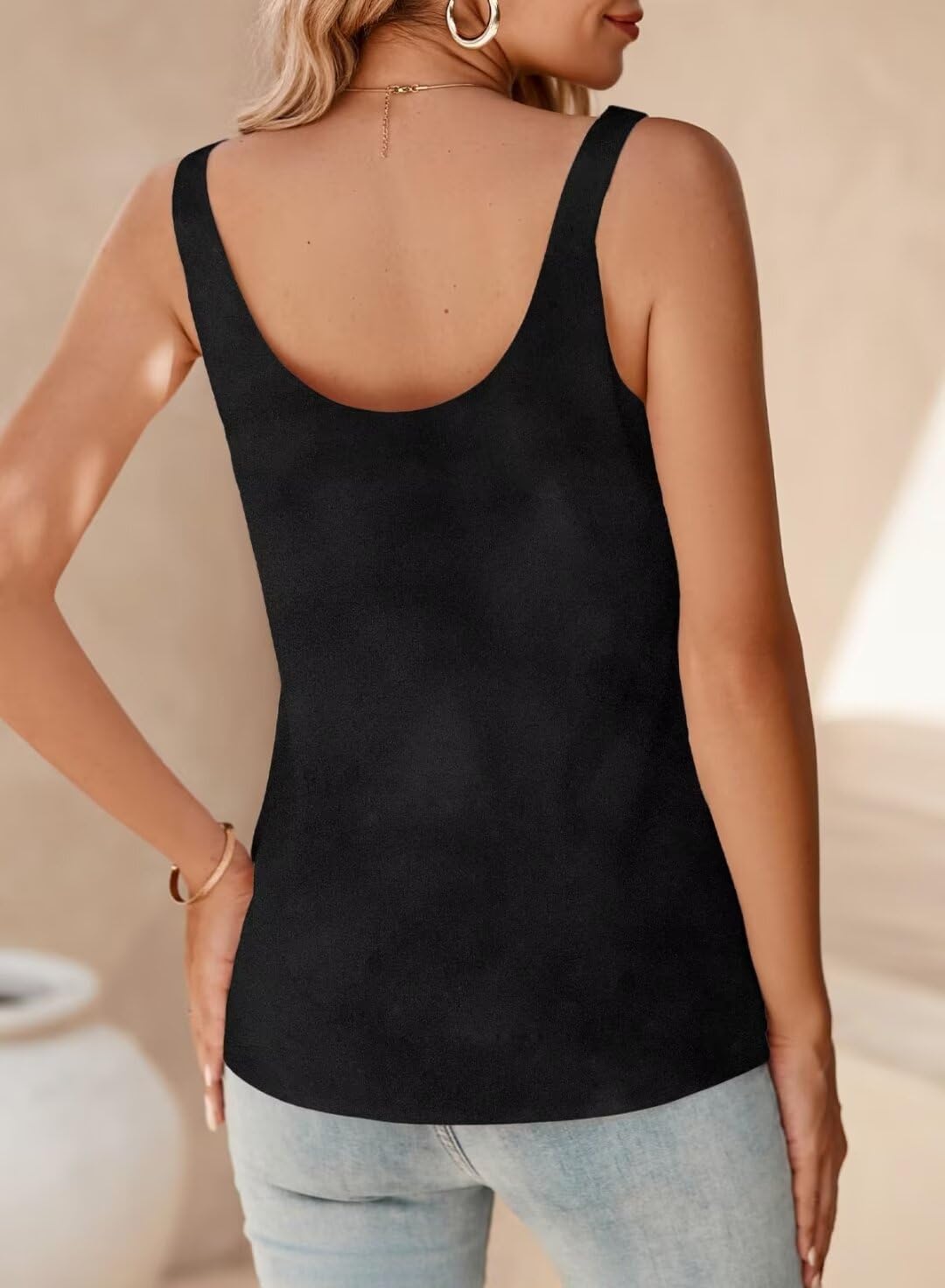 BLENCOT Women Silk Tank Top Square Neck Camisole Tops Basic Work Fashion Blouses