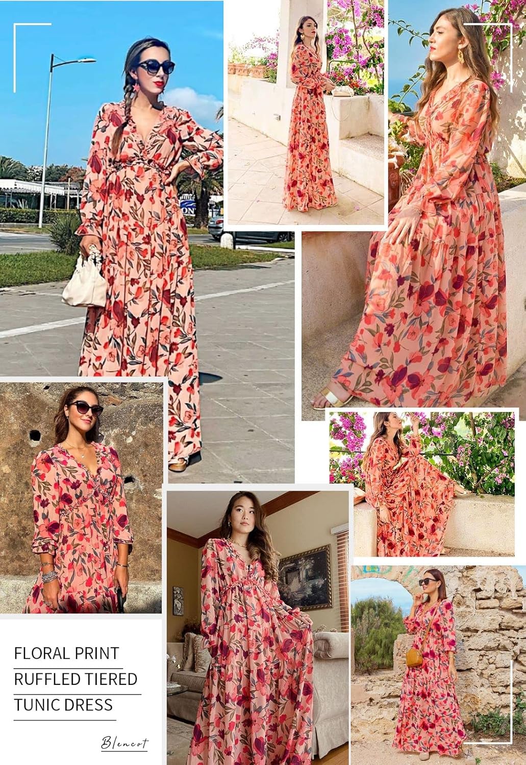 Be the first to review “BLENCOT Womens Casual Boho Deep V Neck Short Sleeve Long Dress”