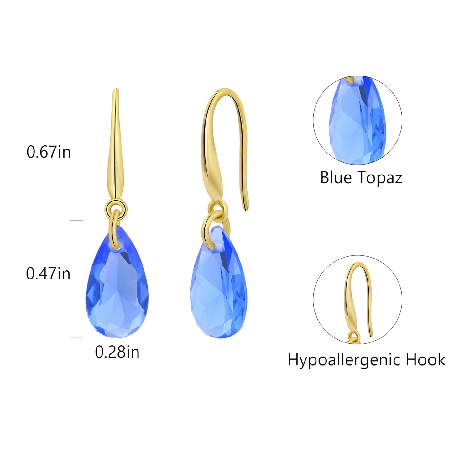 [November Birthstone] The topaz on the teardrop earrings for women is the birthstone for November and symbolizes strength, wisdom and courage. Legend has it that wearing Topaz gives the wearer confidence and rejuvenation. Also blue topaz is known as the 4th wedding anniversary stone