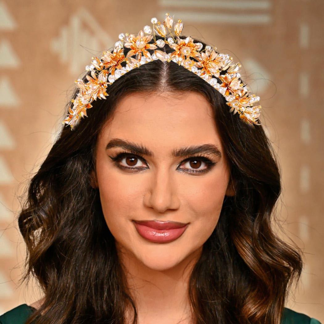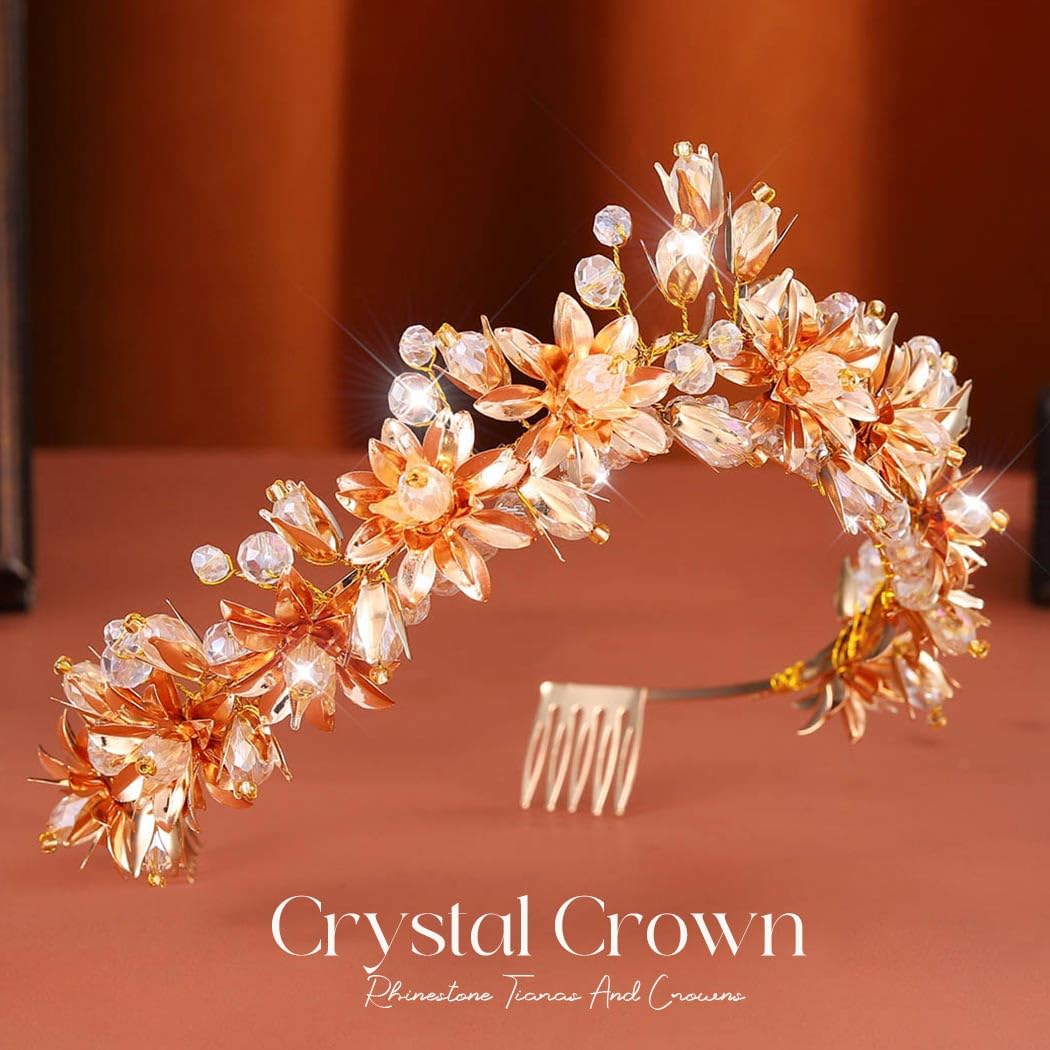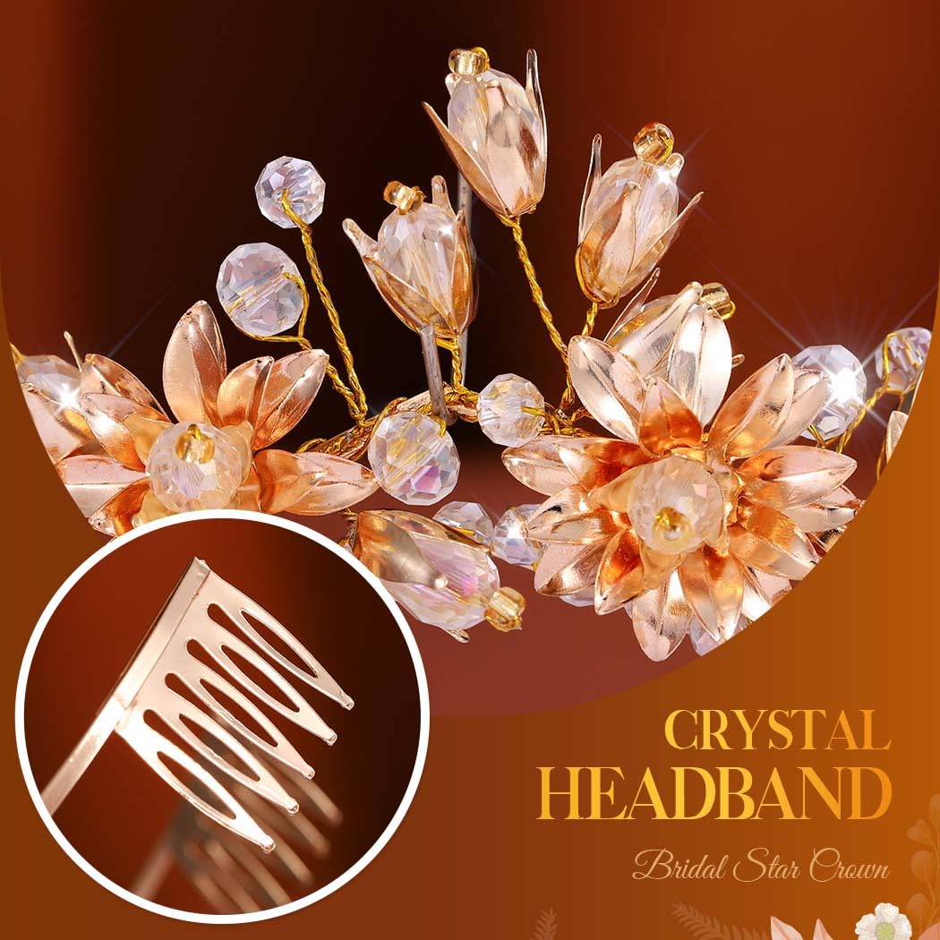 Crystal flower headband tiara is made of gold flower, beads and alloy. Headwear won’t be fade and broken.