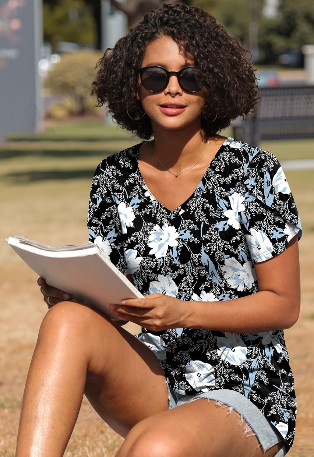 CATHY 2025 Womens Summer Tunics Short Sleeve Casual T-Shirts V Neck Loose Tops