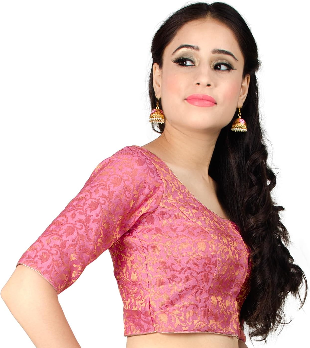 Pretty obviously, The non-padded choli-cut blouse for your comfort it’s lined With cotton fabric and outer fabric is brocade/art silk. It’s Readymade non Padded Blouse,if you choose a non-padded option, you will have a more understated look.