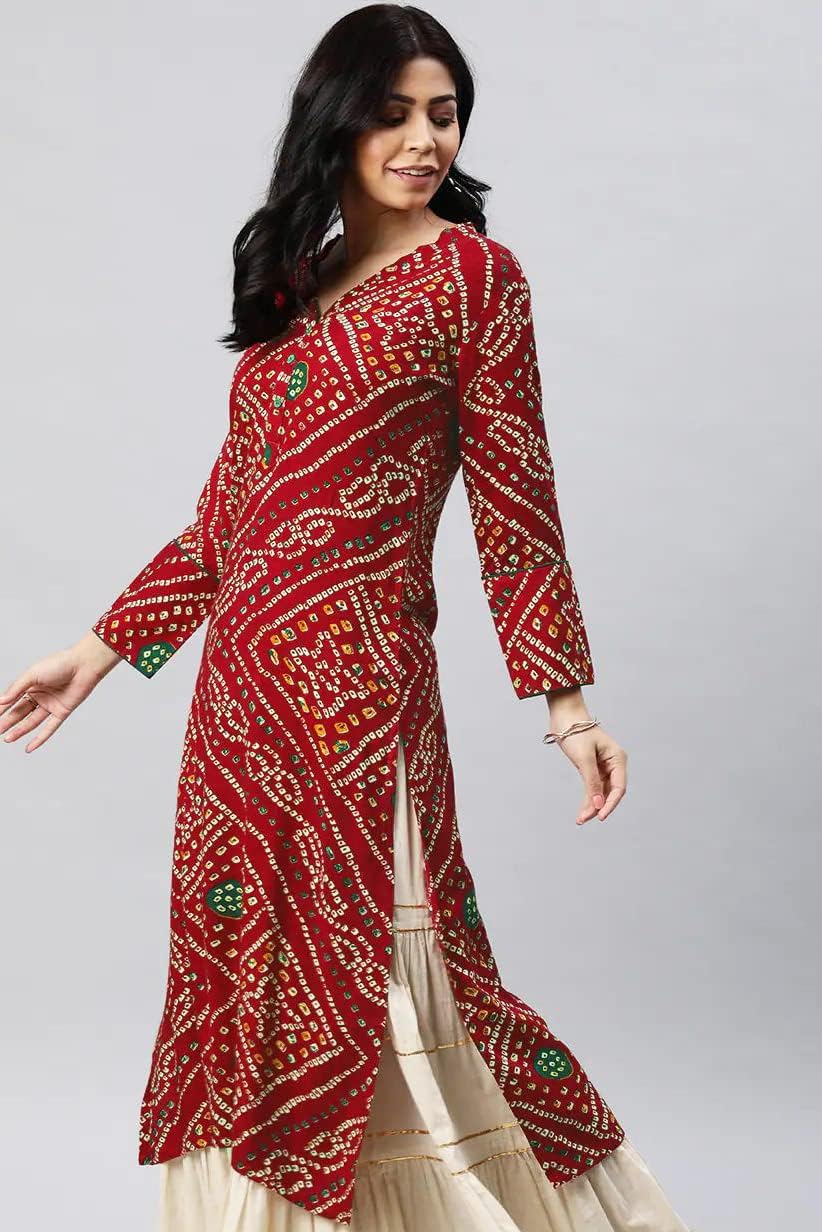 Depending on the kurti’s length and style, it can be paired with different bottoms such as leggings, churidars, palazzo pants, or jeans. The choice of bottoms can influence the overall look of the outfit.