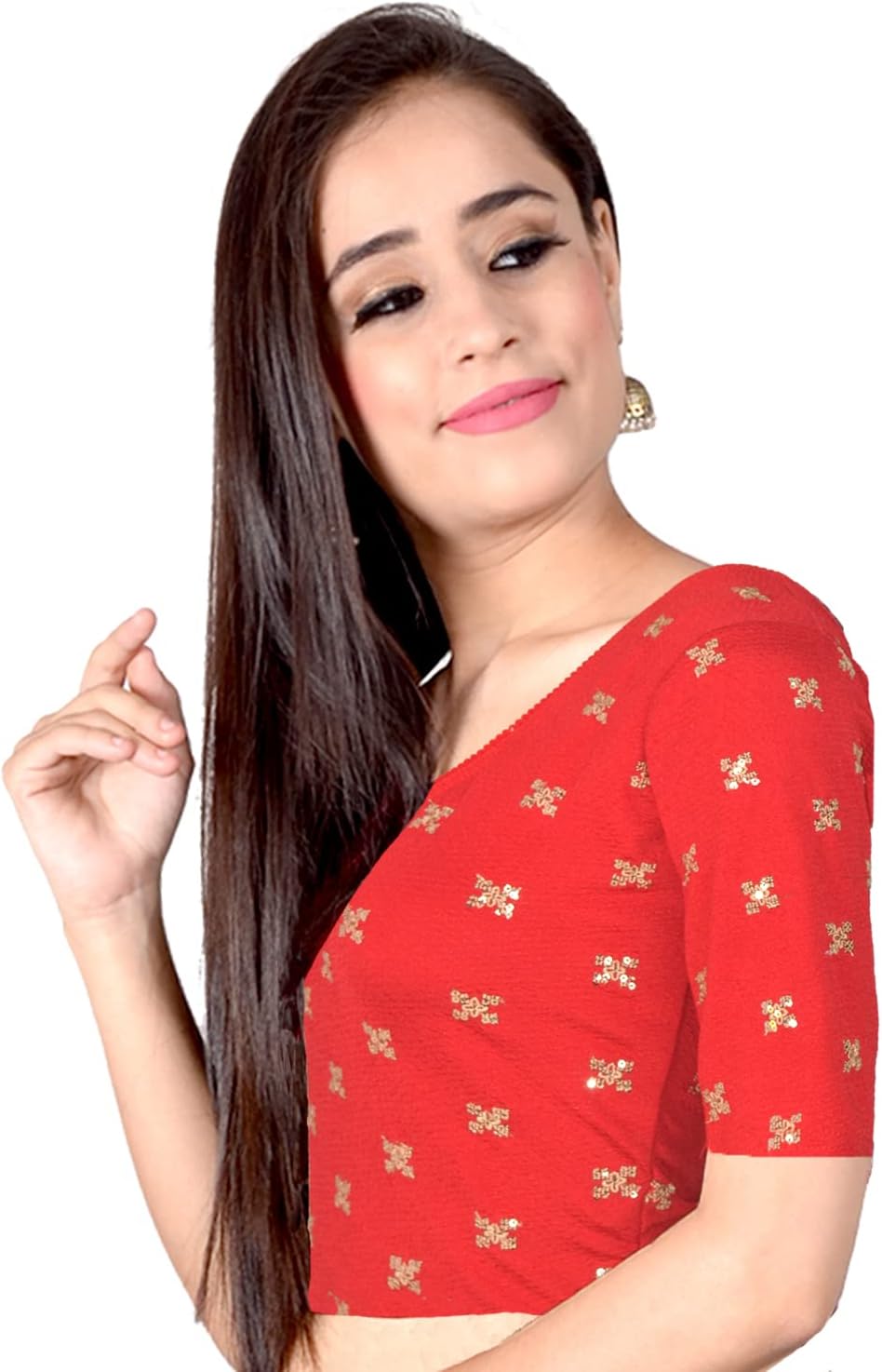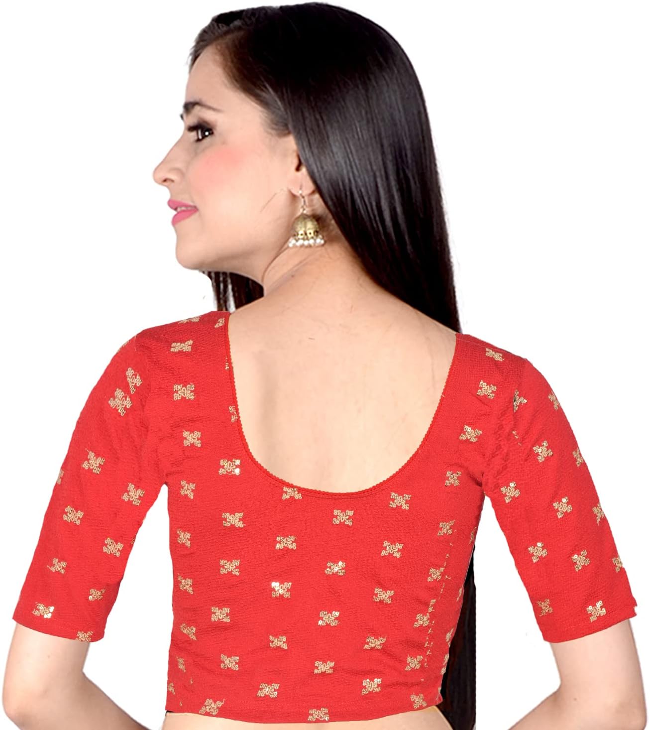 Overall, a cotton lycra thread embroidery 3/4 sleeve round neck crop top blouse offers a perfect blend of comfort, style, and versatility, making it a wardrobe staple for fashion-conscious individuals.