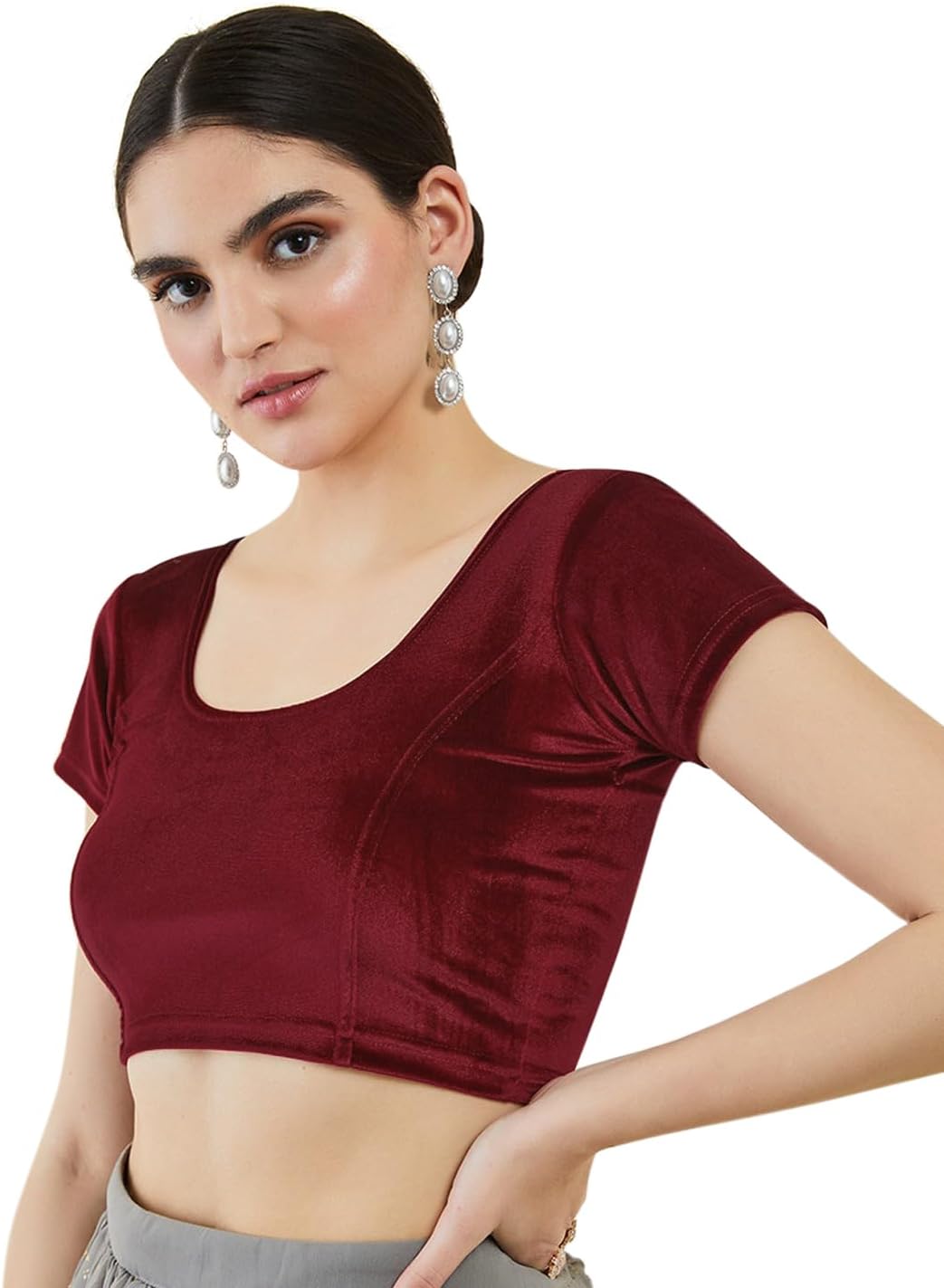 The readymade saree blouse is made of Velvet so will have proper fittings to your body.This trendy solid color basic cropped top blouse is perfect for summer/winter days or base layering that can be worn with all kind of Sarees and even jeans, pants, skirts, cardigans, jacket etc.