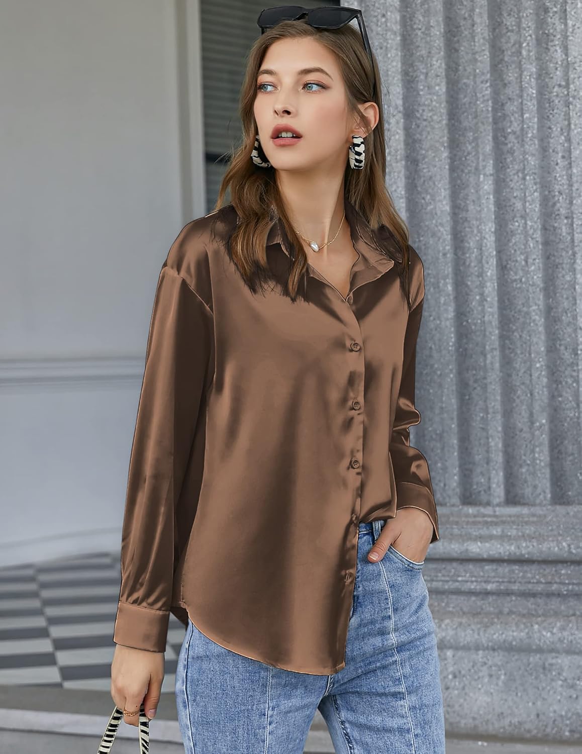 The satin silk shirt is a must-have item, it can be freely matched with any piece of clothing in your wardrobe