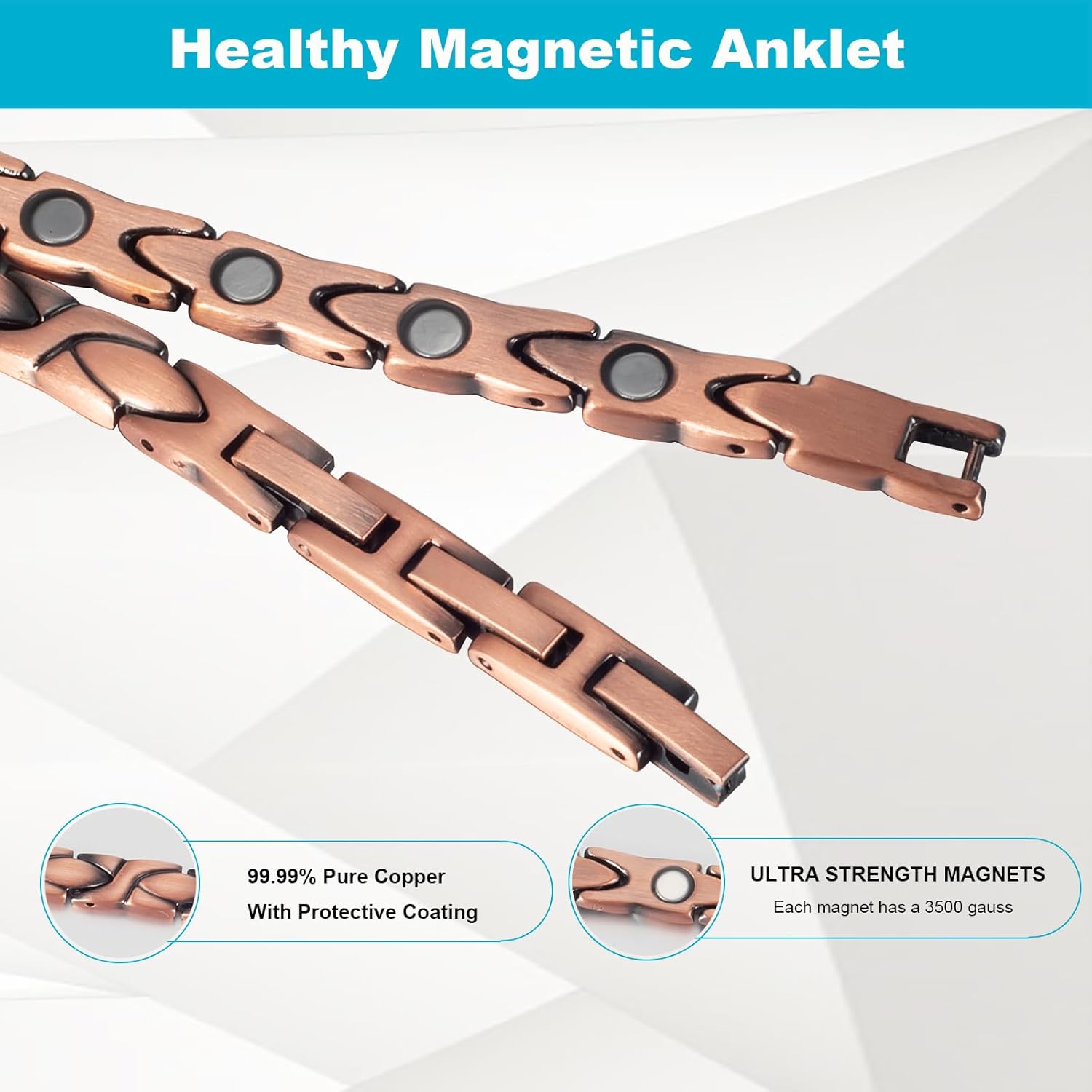 Copper magnetic anklet: The copper anklet has an effective magnet embedded inside, close to your ankle, the effect is better.