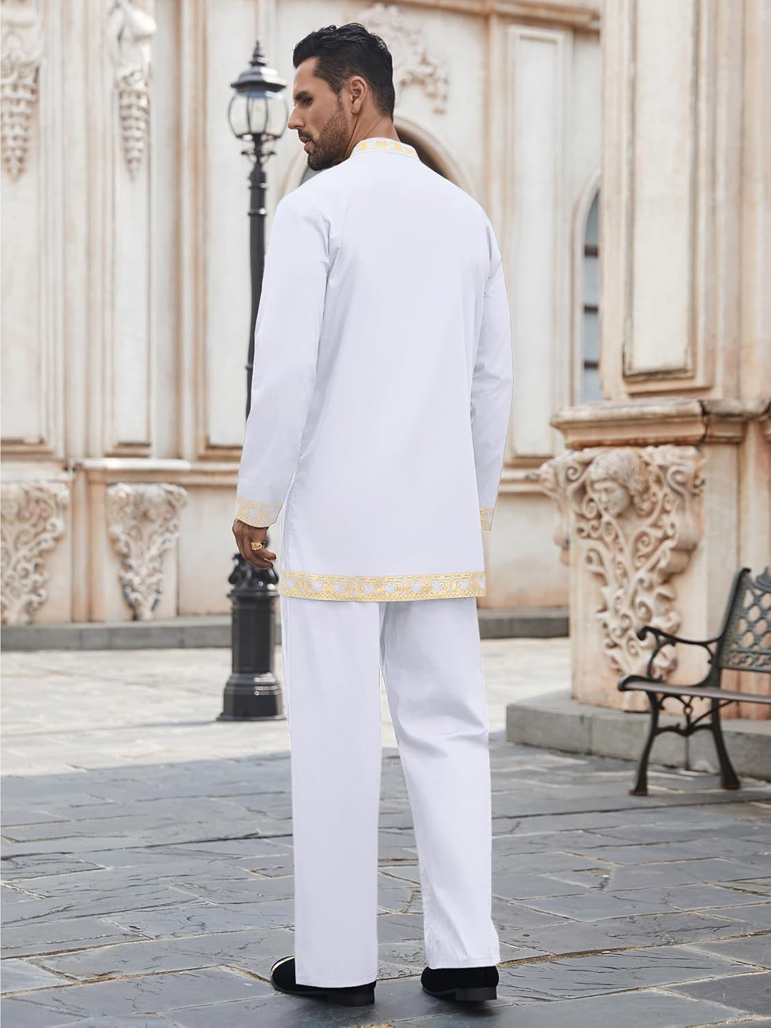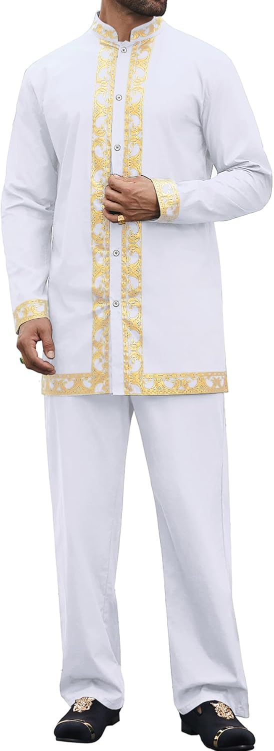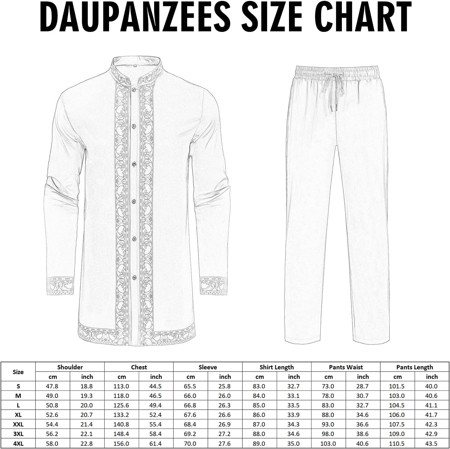 Daupanzees Men’s African 2 Piece Set Luxury Traditional Suit Gold Print Dashiki Shirt and Pants Outfit