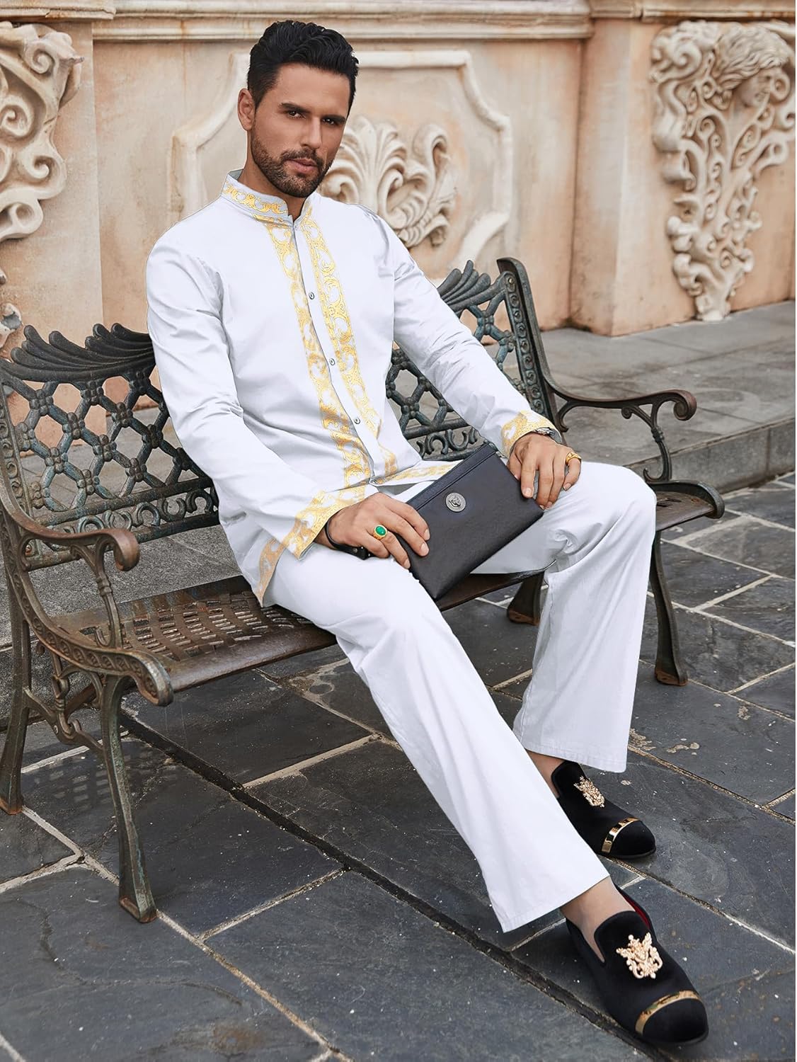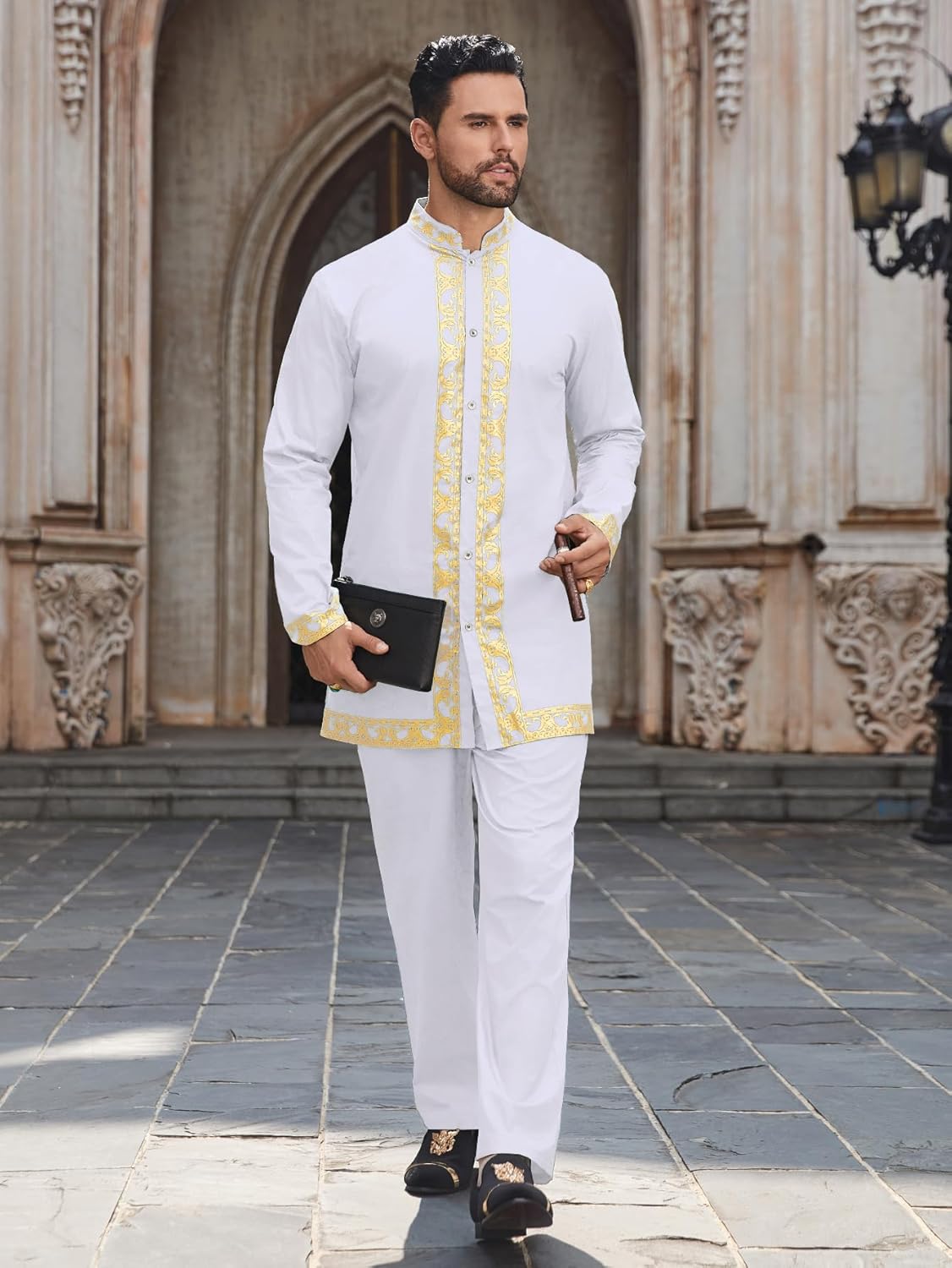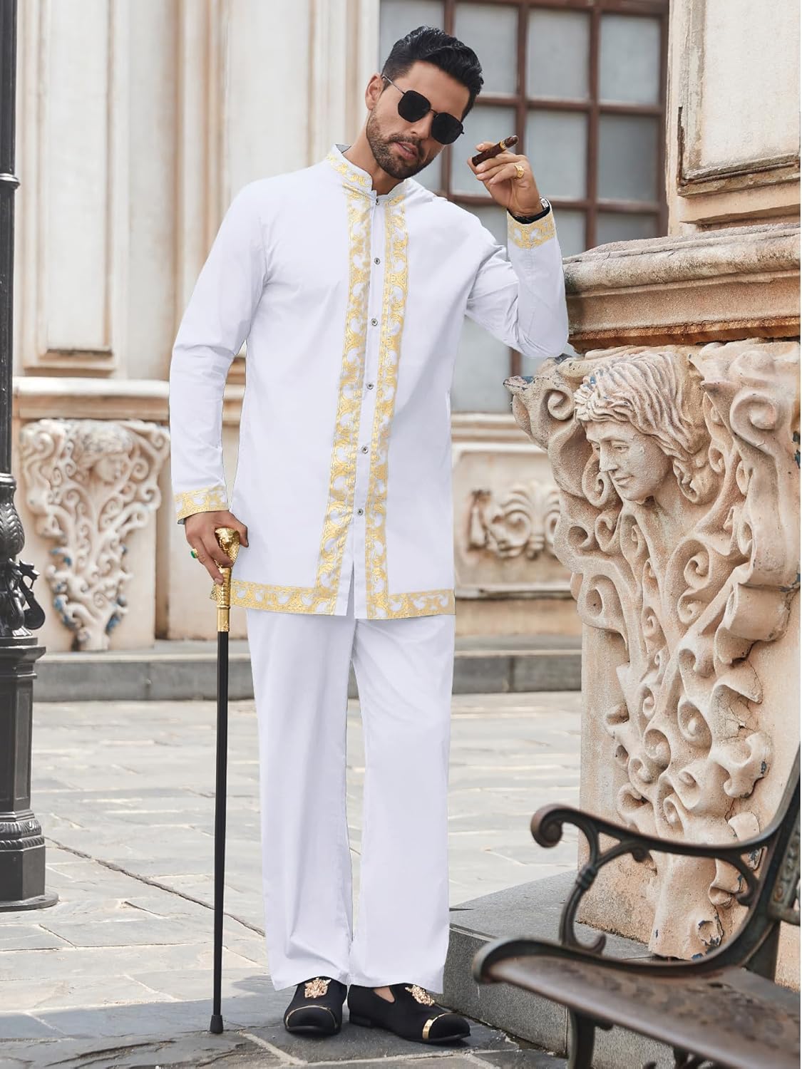 Men’s Luxury 2 Piece Set Gold Print Traditional Suit