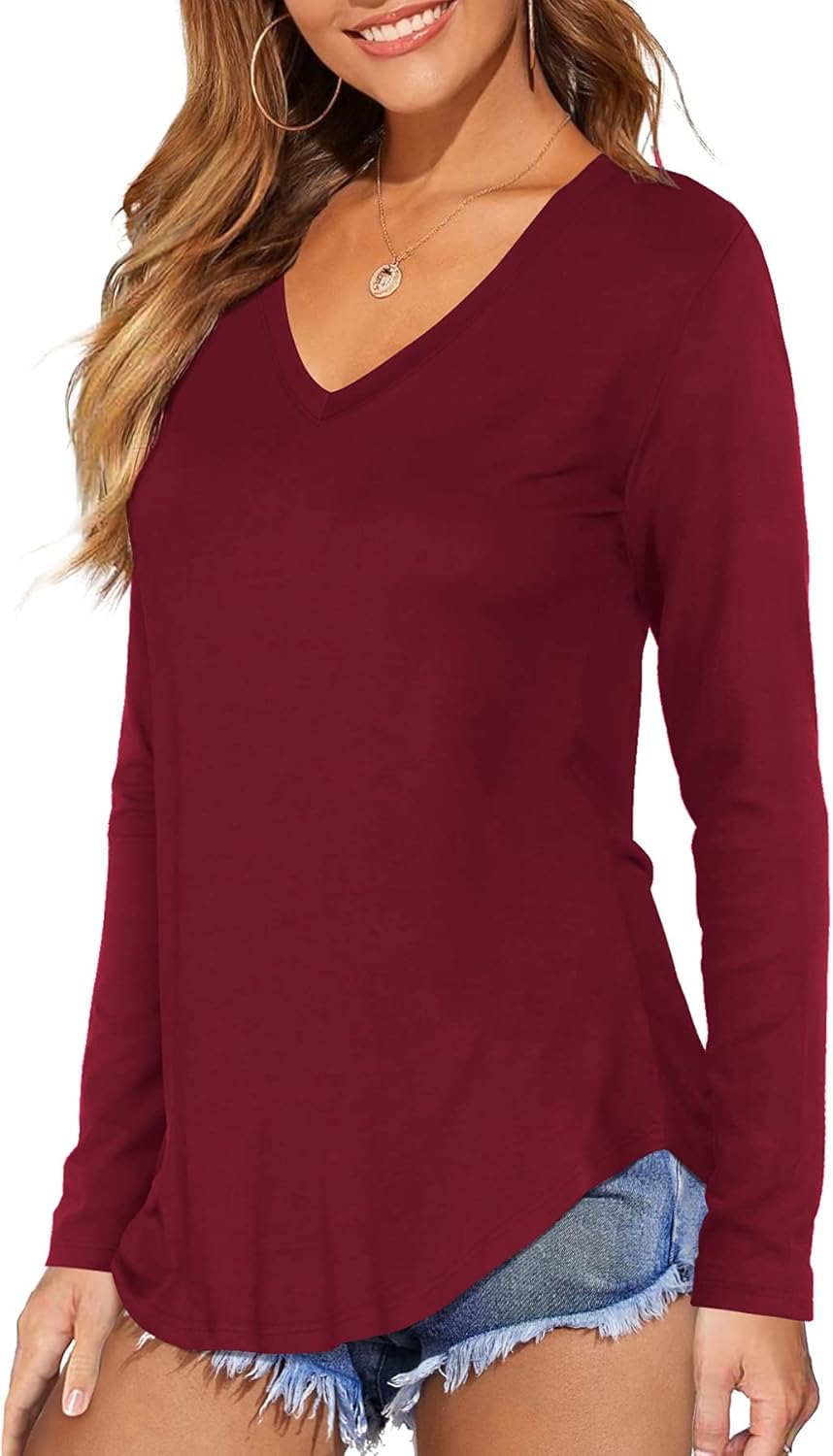 This basic vneck shirt for women can give you a pretty cozy feeling.