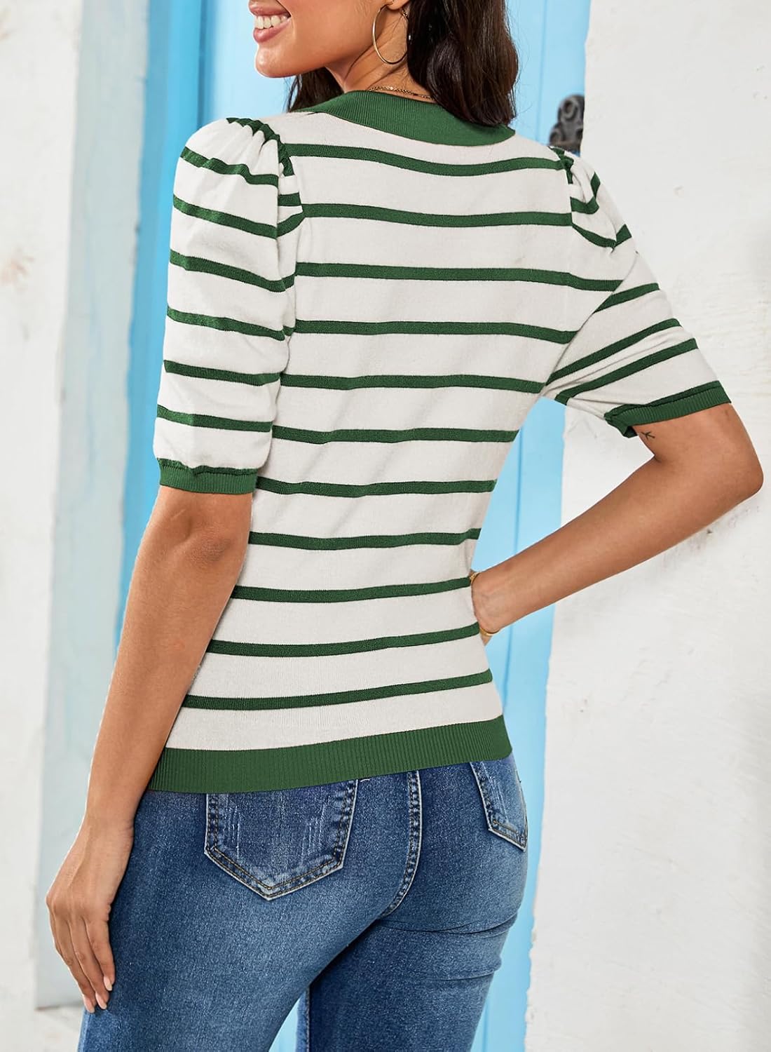 Dokotoo Puff Short Sleeve Sweaters Top Collared Tshirts for Women Polo Shirts