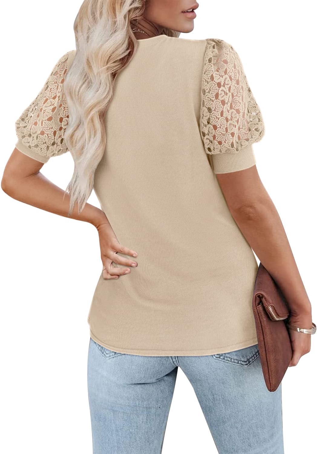 This fashion ribbed top is perfect for casual, everyday situations or meetings at the office, so add a puff lace sleeve blouse to your wardrobe.