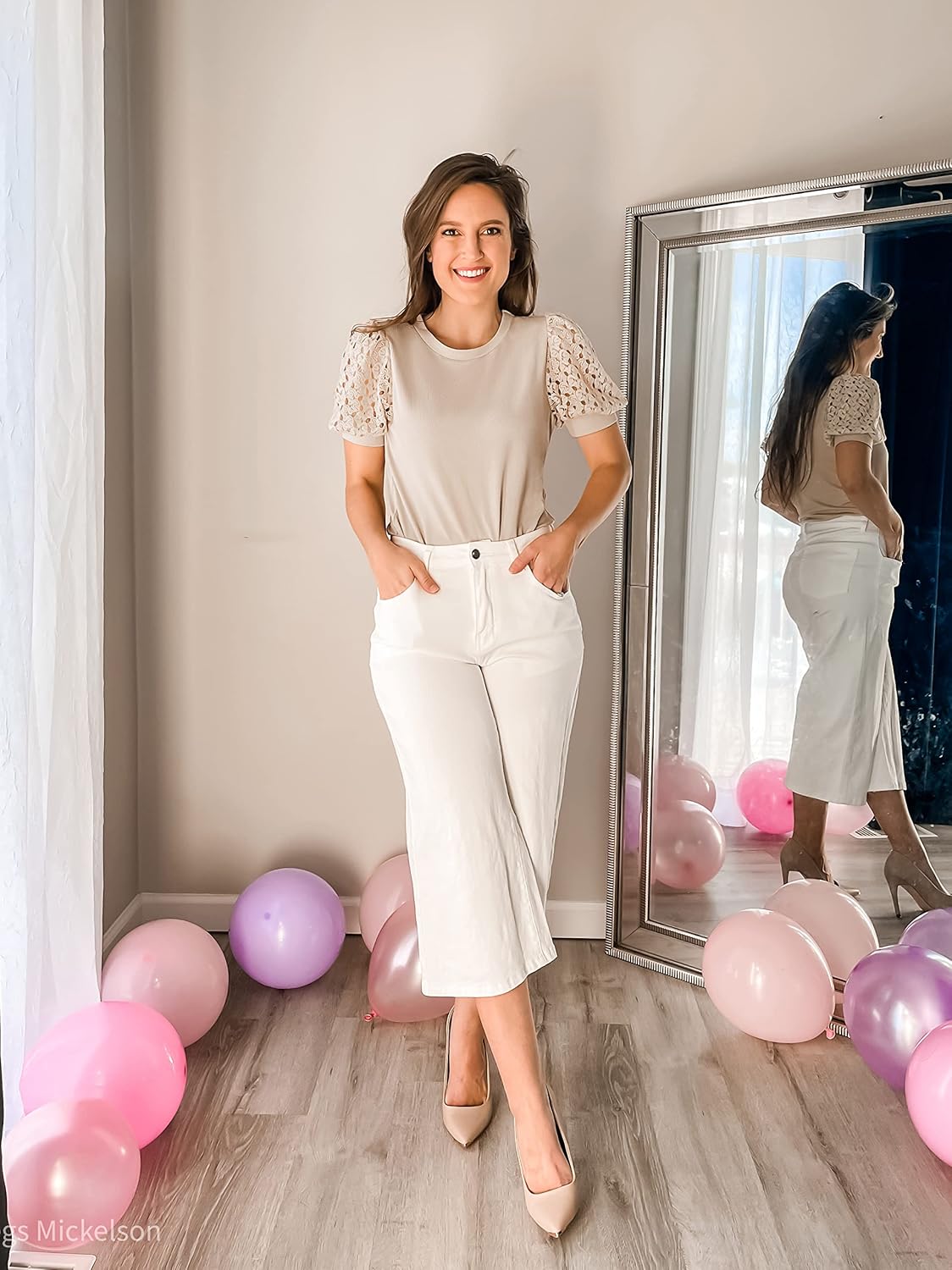 This Puff Short Sleeve Tops with Lace Detail could paired with your favorite denim or shirt for a relaxed look that’s still stylish.