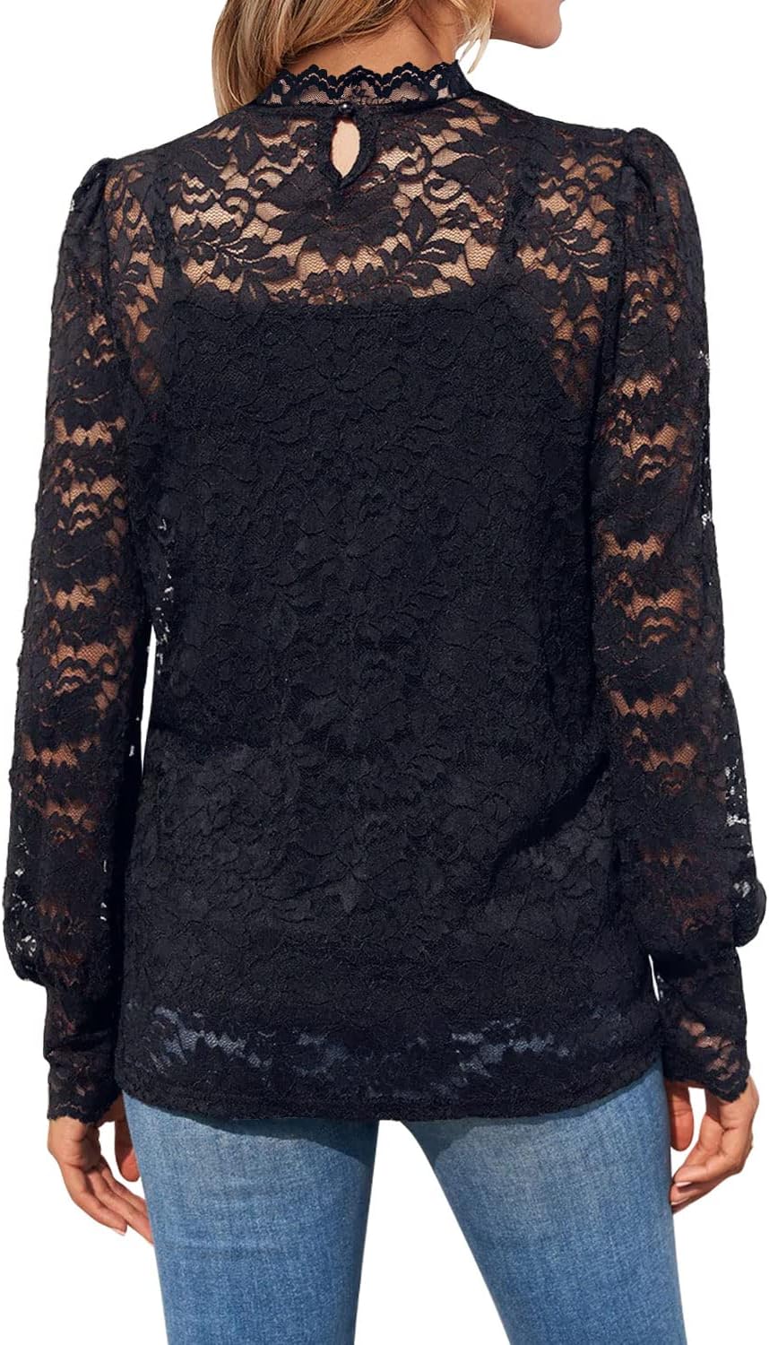 DOROSE Womens Lace Tops Long Puff Sleeve Ruffle Trim Lace Shirts