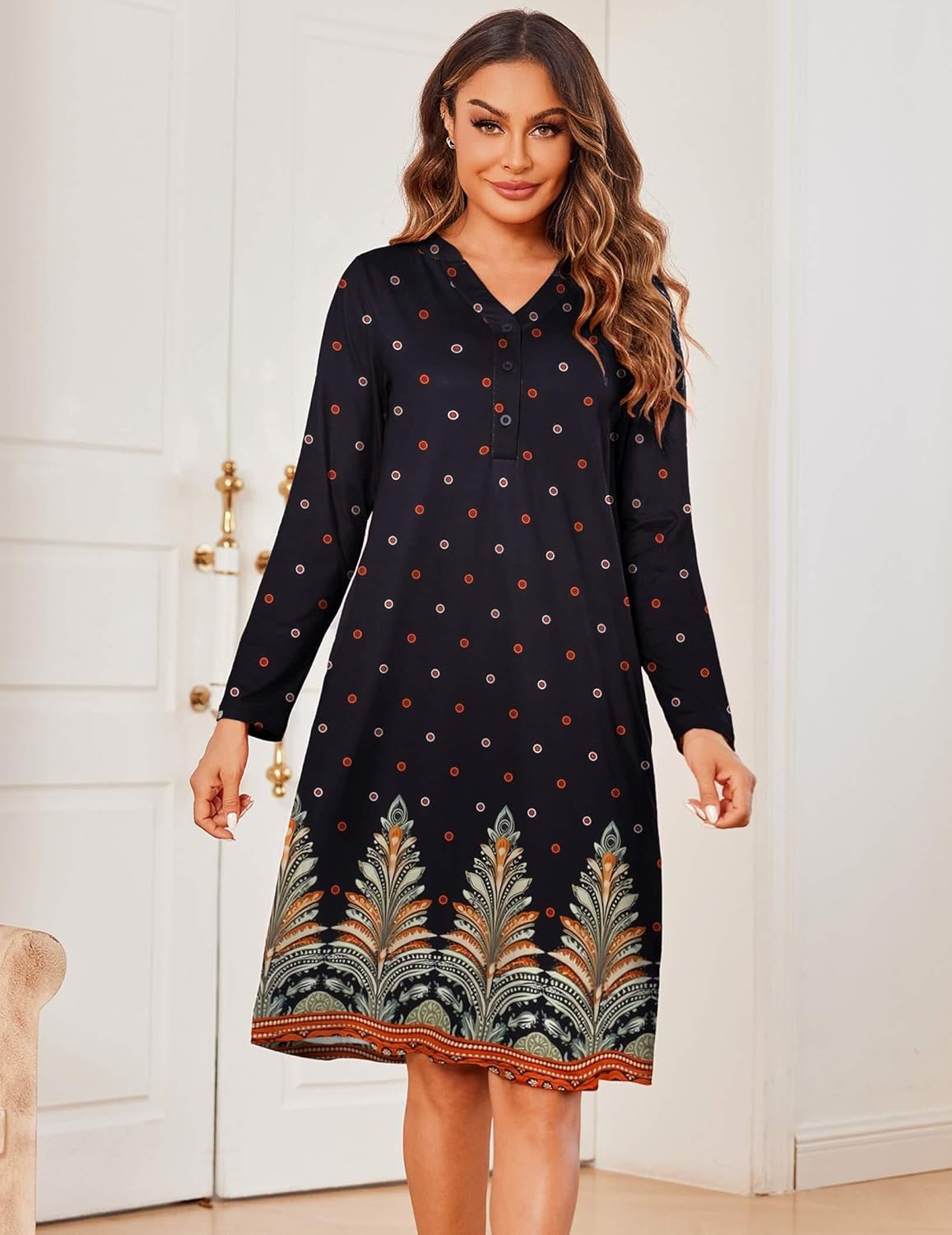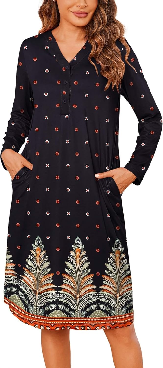 Ekouaer Womens House Dress Long Sleeve Nightgowns with Pockets Long Sleeve NightgownsLong Sleeve Nightgowns