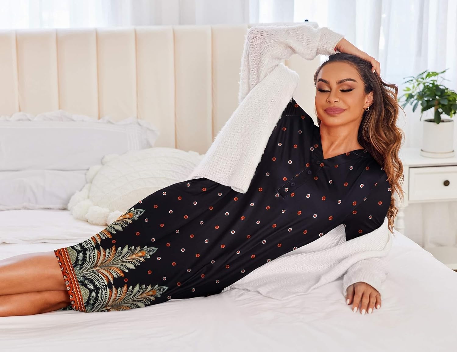 Size Reference Long Sleeve Moo Moo Dress Ekouaer MOOMOO DRESSES