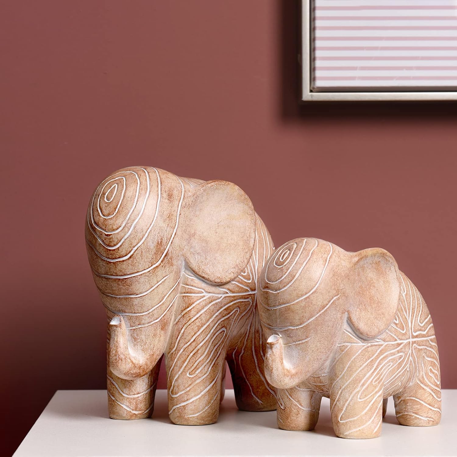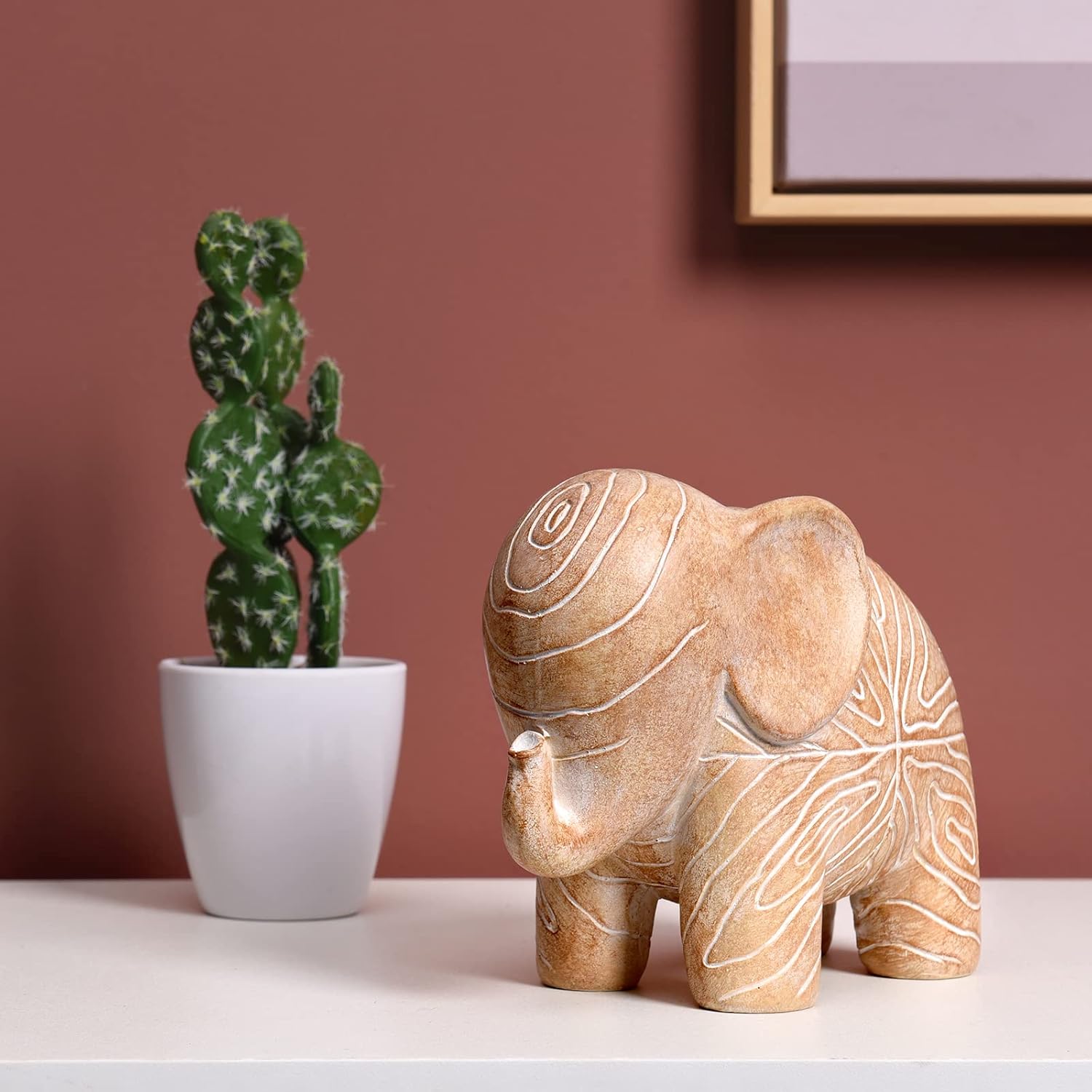 【Material】 This Kakizzy home decoration figurine is made of resin material, and the carefully carved patterns add texture to this African-inspired wood-colored elephant ornament
