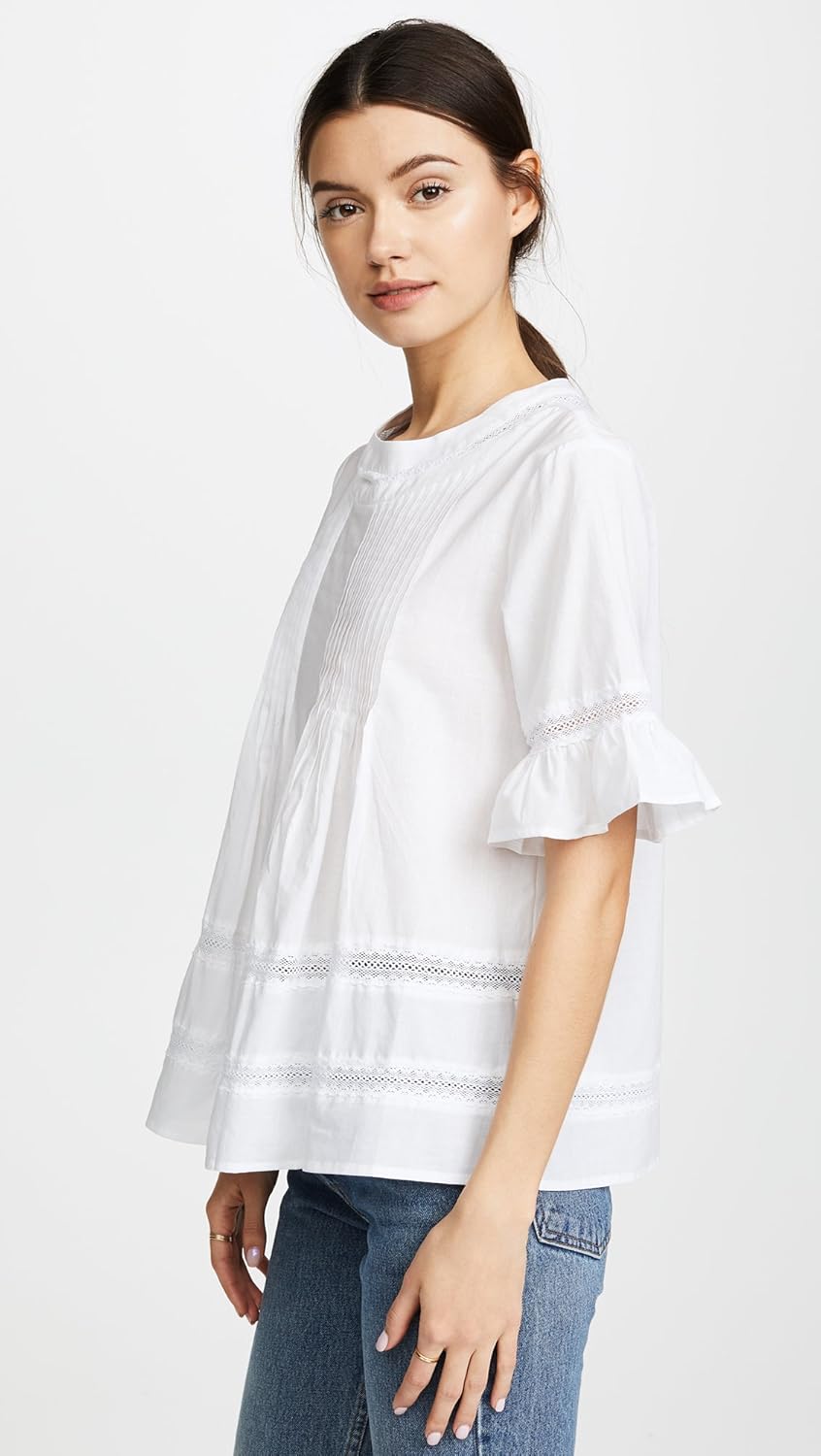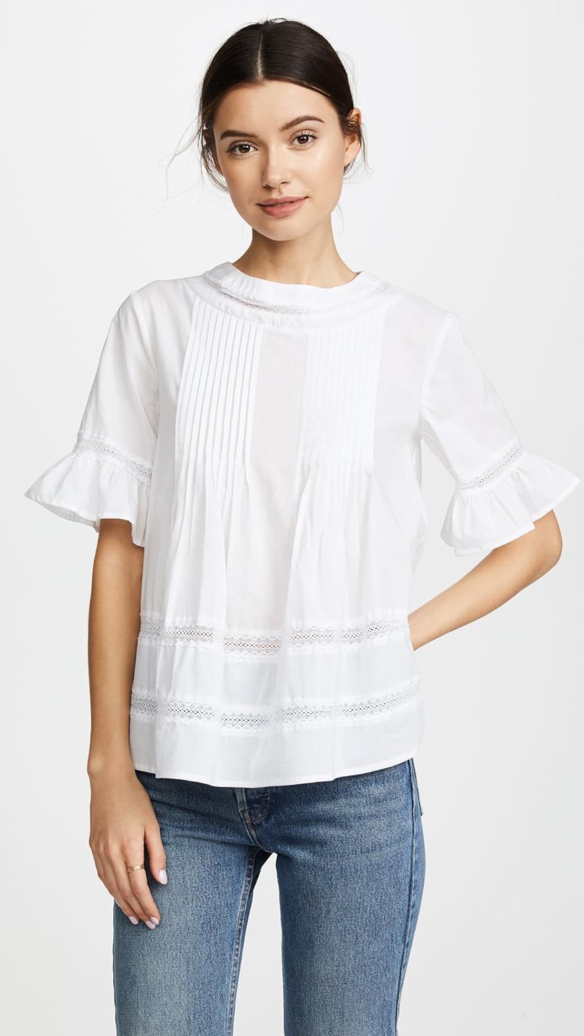 A free-spirited ENGLISH FACTORY blouse in a mix of crisp fabric and airy lace.