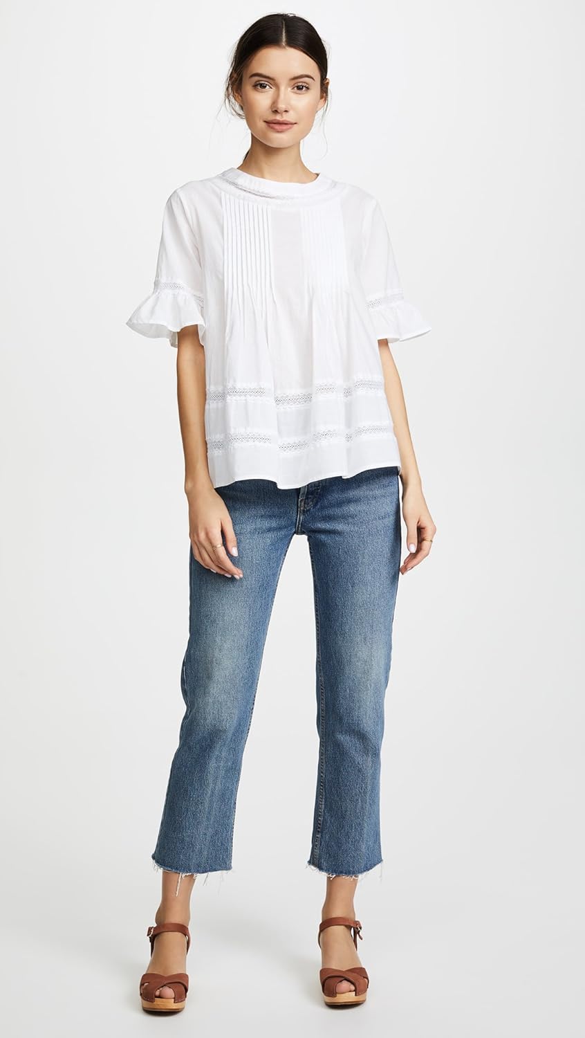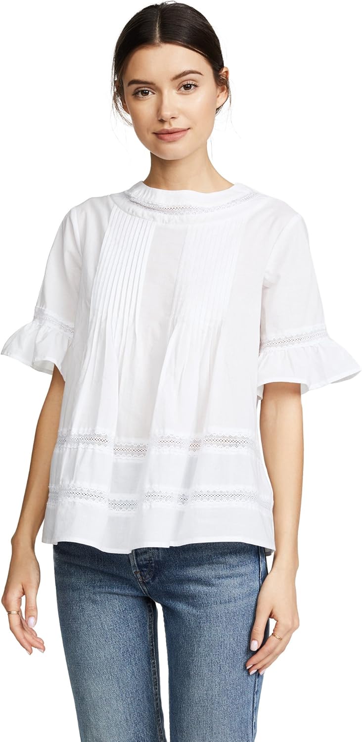 A free-spirited ENGLISH FACTORY blouse in a mix of crisp fabric and airy lace.