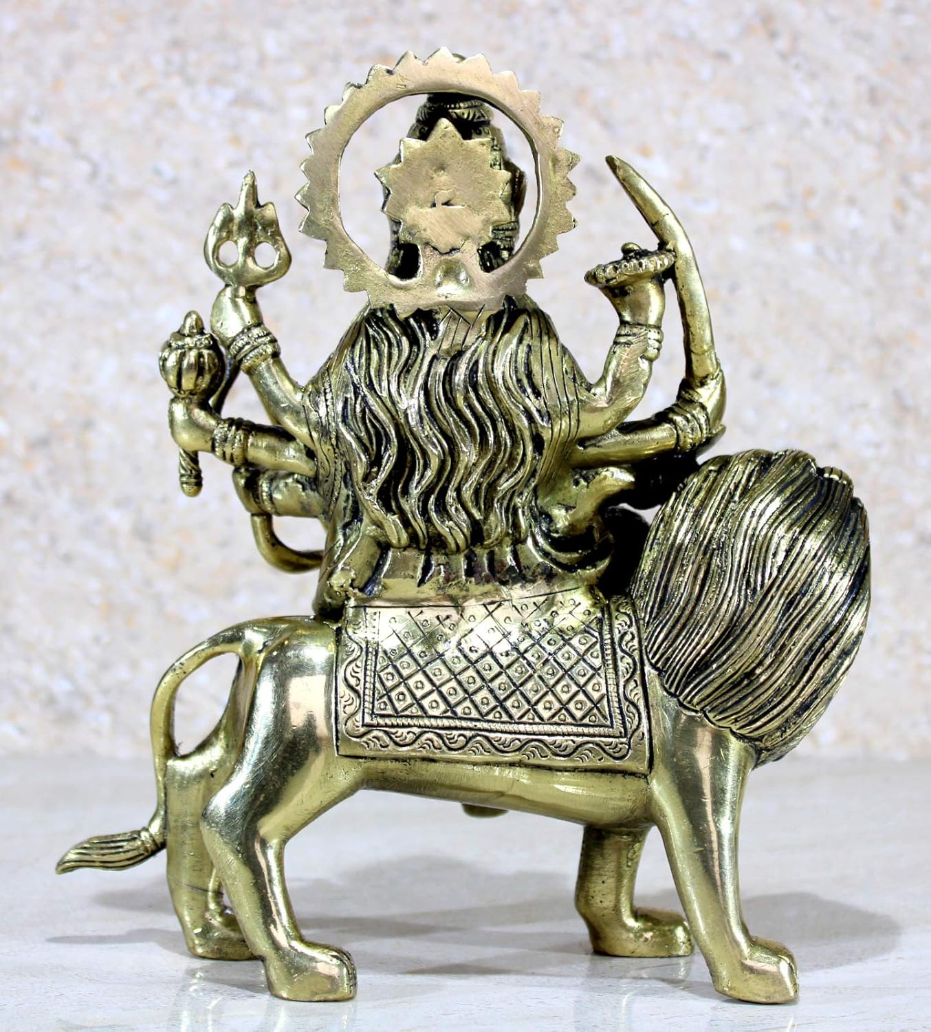 Goddess Durga Mata / Shera Wali statue made of Brass, made using Brass for your Home/ Workplace/ Office/ Desk/ Counter etc.