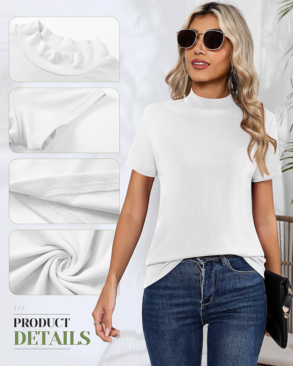 3 x Short sleeve mock turtleneck shirts for women