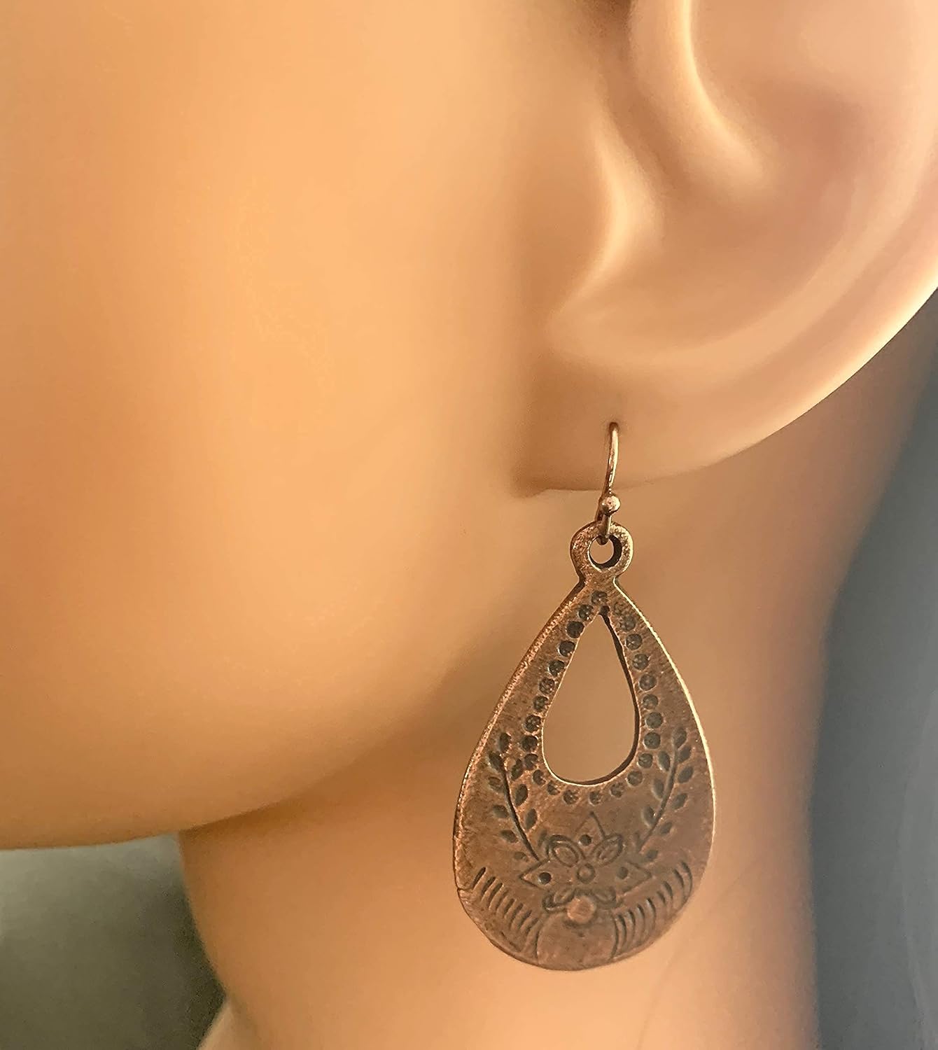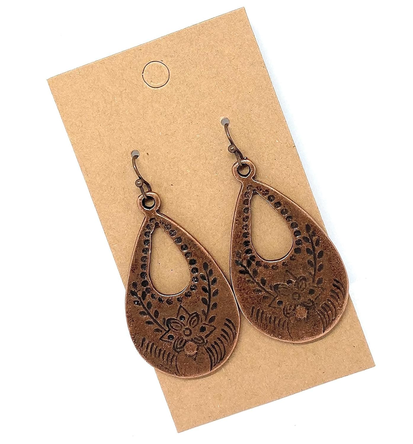 Copper stamped teardrop measures 1.75″. Copper ear wires. All of my items are handmade, arrive in a gift box and are packaged with care. I handcraft many different designs including silver, gold, copper, brass, hoop, dangle, drop, teardrop, simple and formal earrings that make the perfect Birthday, Christmas, Mother’s Day, Valentine’s Day, and Anniversary Gifts. Message me with questions!