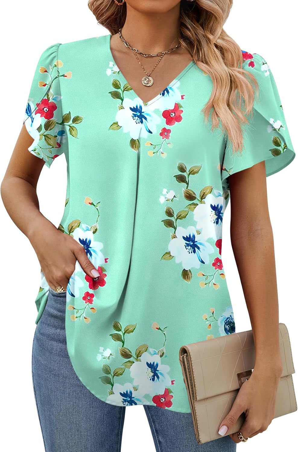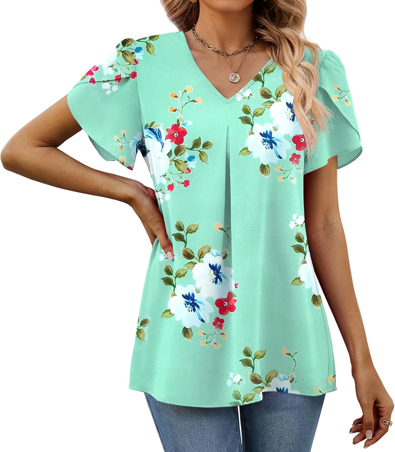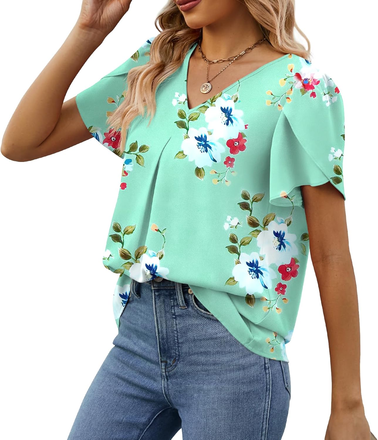 Women’s Petal Sleeve Blouses V Neck Dressy Shirts – Model Show