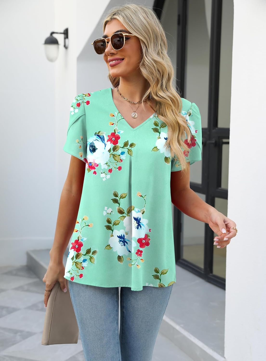 The dressy blouse short sleeve shirts is suitable for party, shopping, work, vacation, wedding, shopping, beach, and other occasions.