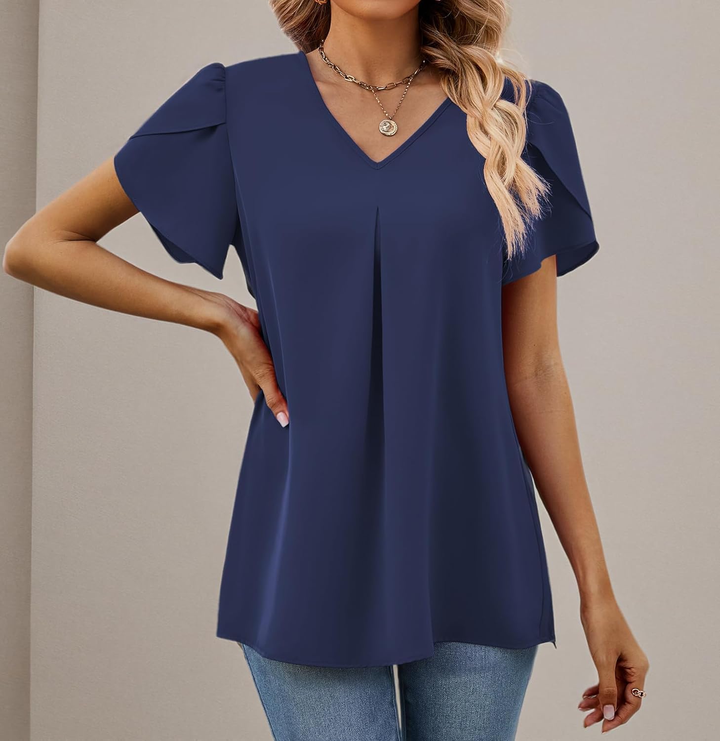 Women’s Petal Sleeve Blouses V Neck Dressy Shirts – Model Show