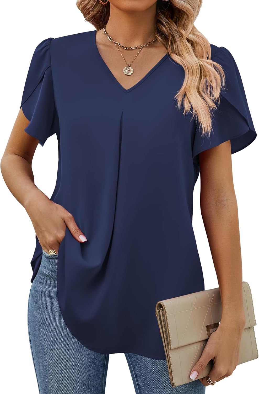 Women’s Petal Sleeve Blouses V Neck Dressy Shirts – Model Show
