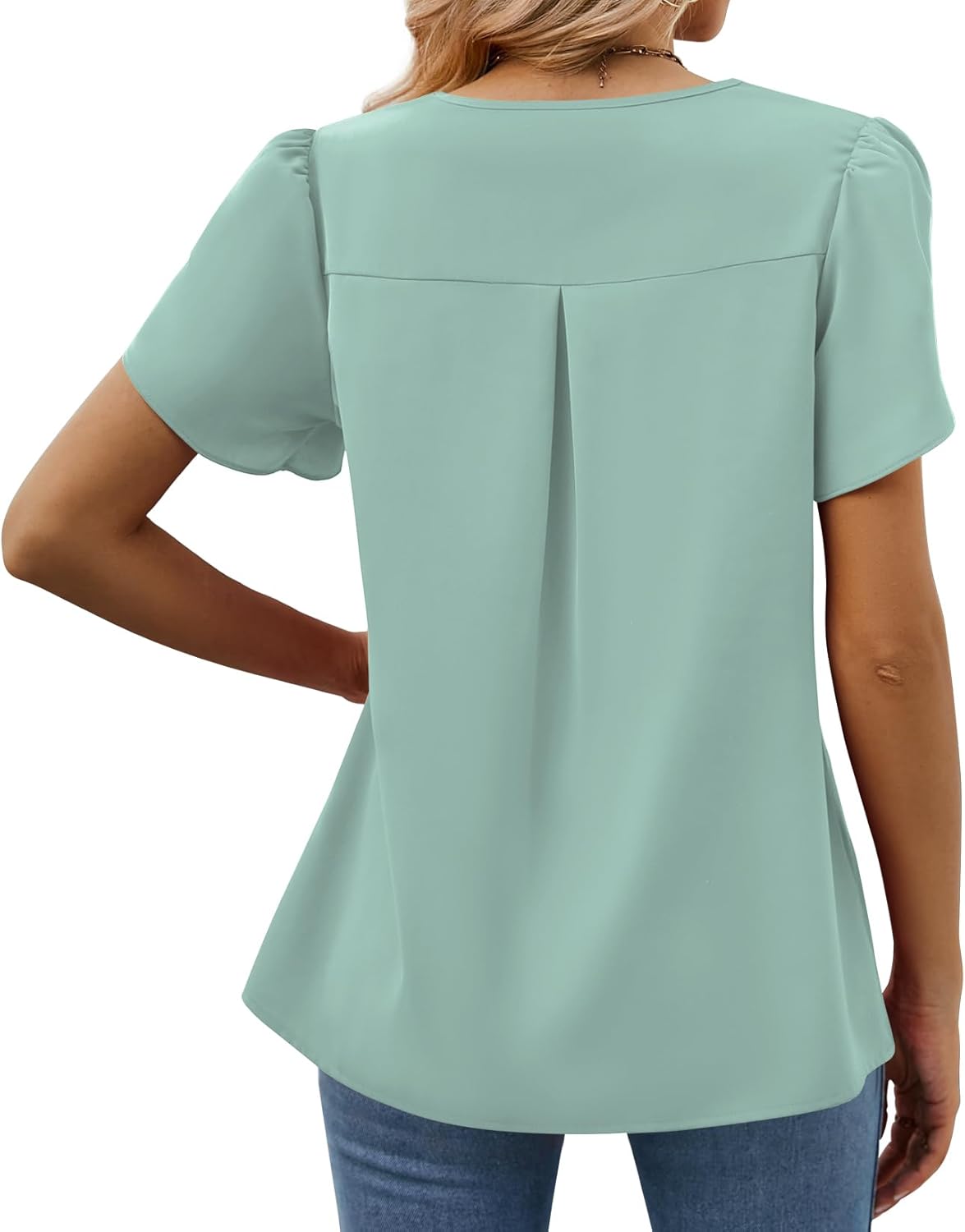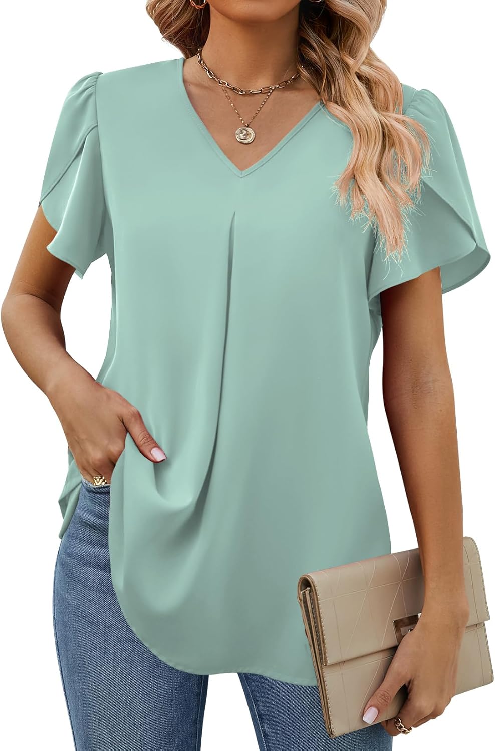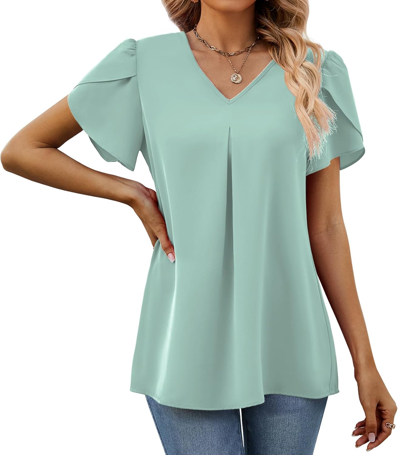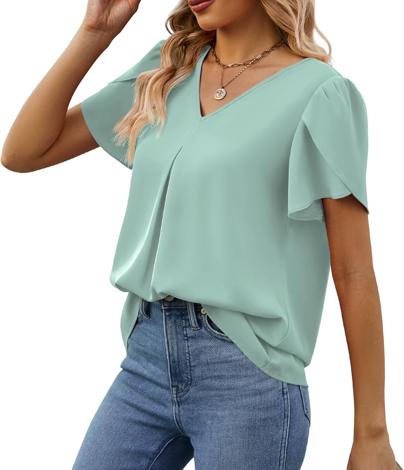 Women’s Petal Sleeve Blouses V Neck Dressy Shirts – Model Show