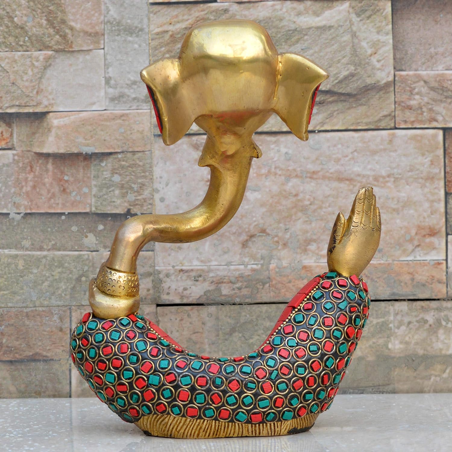 insist on our product bringing a royal look to your interior with this beautifully carved brass showpiece. A TRUE WORK OF ART Set is handmade with traditional sand casting techniques by artisans from North India. Bring in prosperity and good fortune to your home with The beautiful gold finish Jewellery art work Ganesh statue. This makes for a fantastic gift item for loved ones and looks nice in antique golden. The use of brass ensures added durability and makes this a fantastic buy for sure! Embellish home & office space with extremely elegant looking pieces of decor. A perfect gift on all occasions, for mother, brother, father, sister, in-laws, boss or friends, Decorative Ganesh wherever placed, are sure to beautify the surroundings, gift to someone special & assure a brightest smiles on his face, telling how much gift & thoughtfulness has been appreciated. Add distinction to decor with a genuine handmade craft unlike anything you’ve seen before. Made in INDIAPerfect Home Office Feng Shui Vastu Decorative Product. Adds Harmony