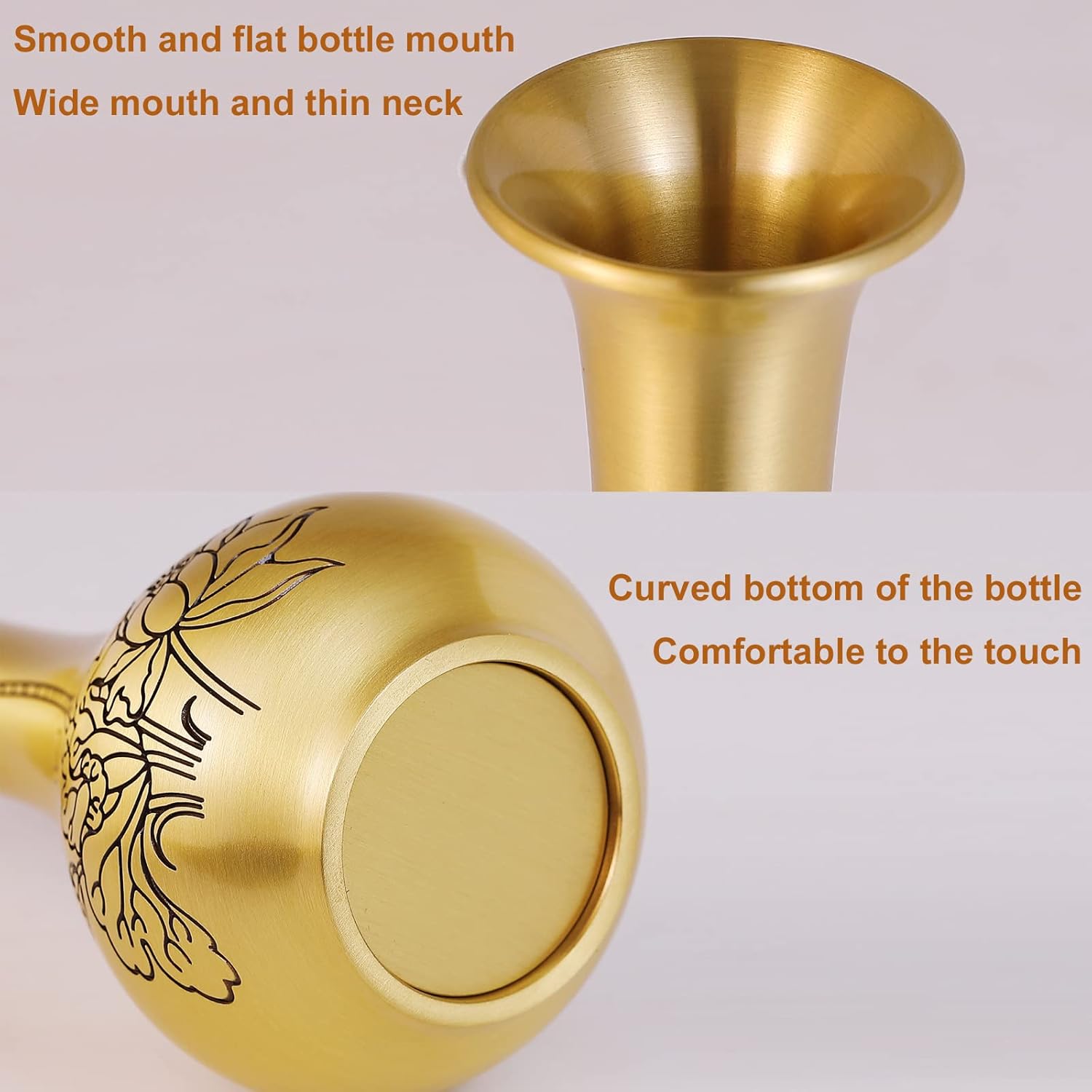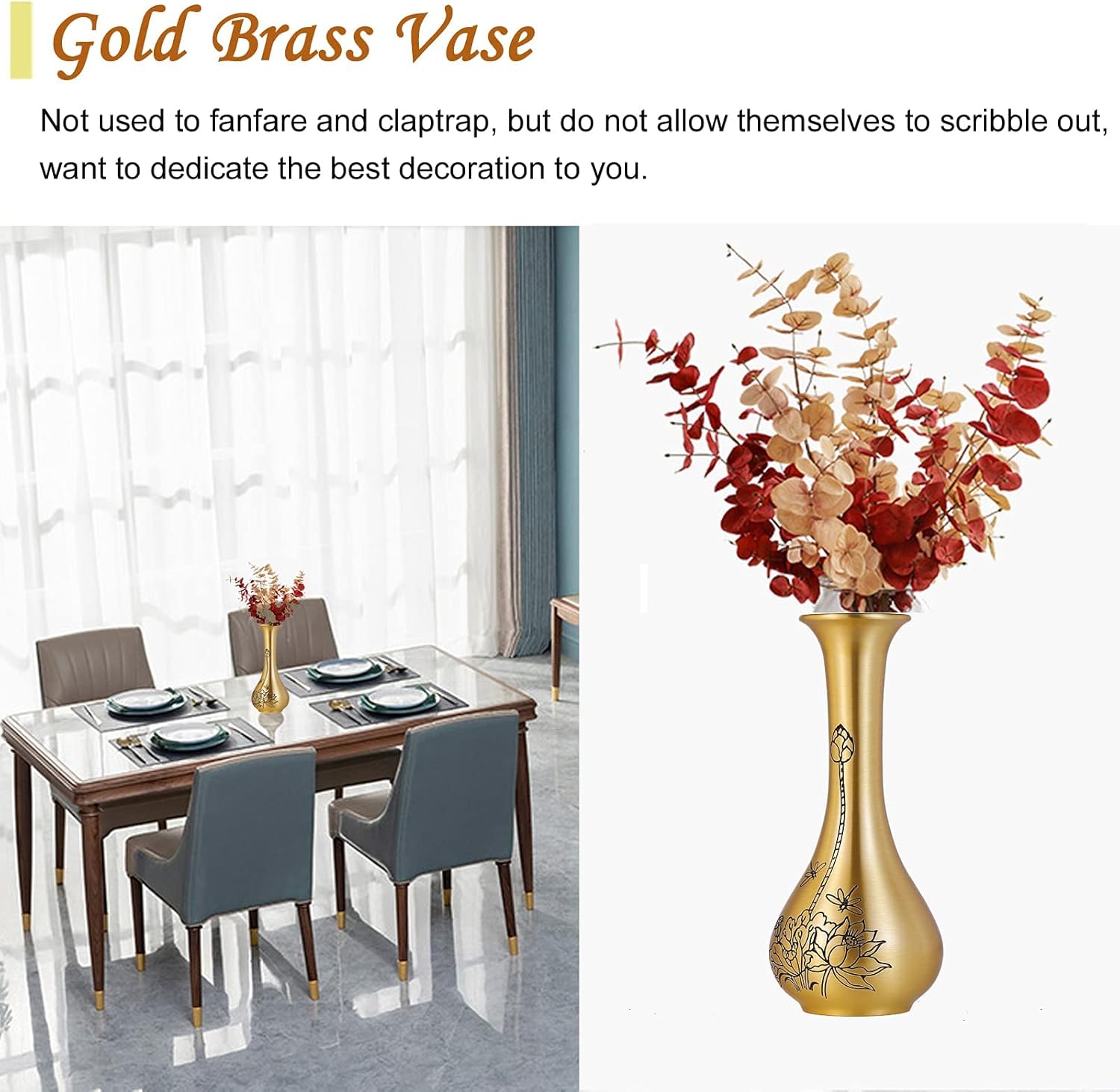 Long Lasting Quality – Crafted from 100% brass, the texture is round and smooth,sure to set the stage anywhere in your home.It is durable and can keep the texture of the product for a long time.fit a decent 3D engraved flowers in the vase will keep your décor looking fresh and up-to-date year after year.