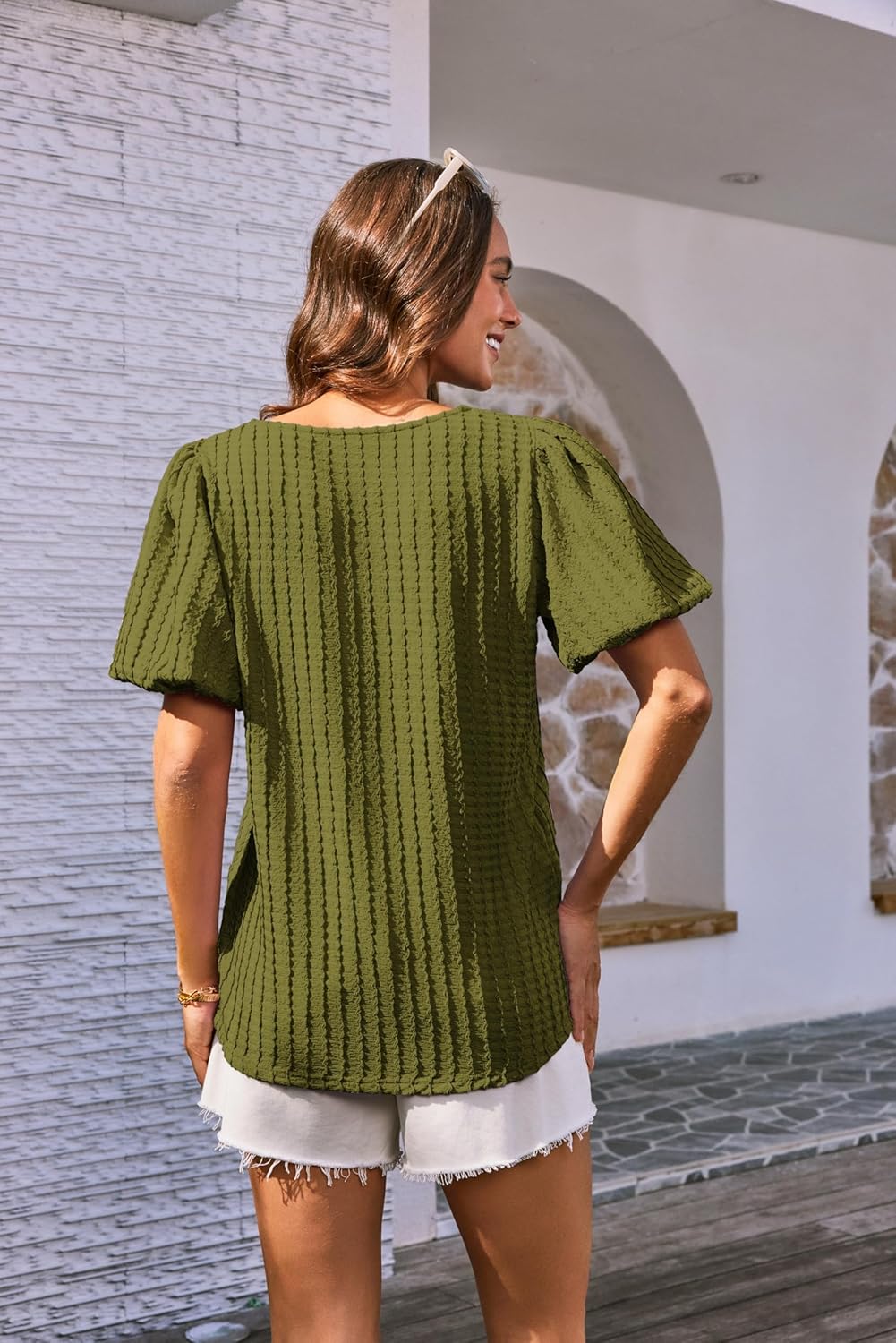 Women’s Puff Sleeve Shirts Summer Fashion Crew Neck Loose Blouse black tops for womenblack tops for women