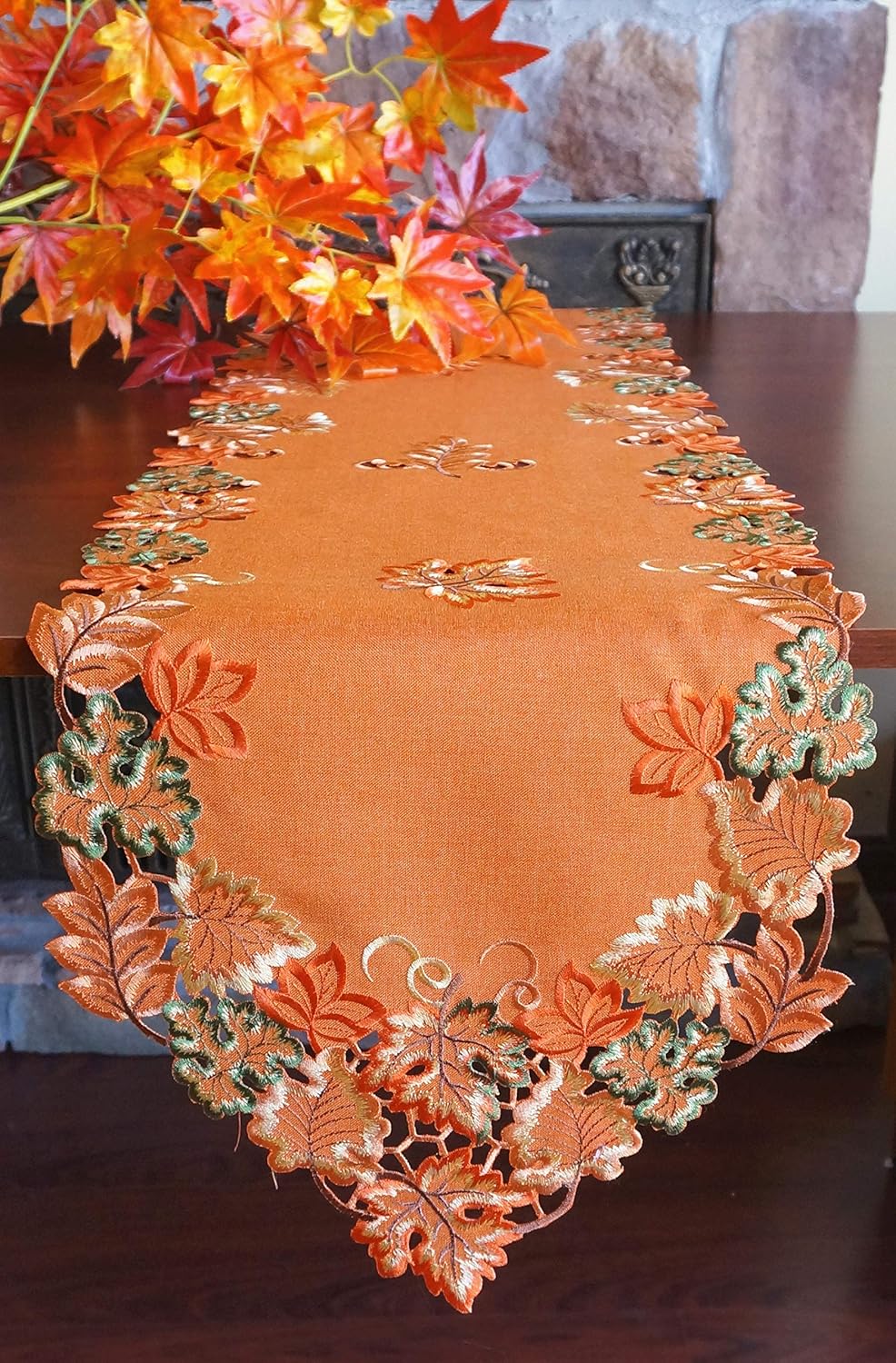 GRANDDECO Harvest Fall Table Runner 15″x68″,Cutwork Embroidered Maple Leaves Dresser Scarf Table Topper for Thanksgiving’s Day Home Dinner Holiday Party Decoration