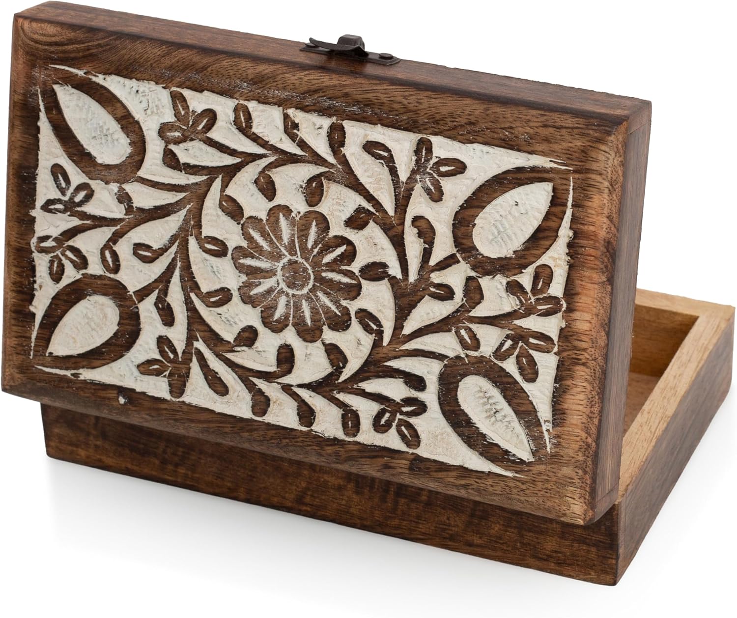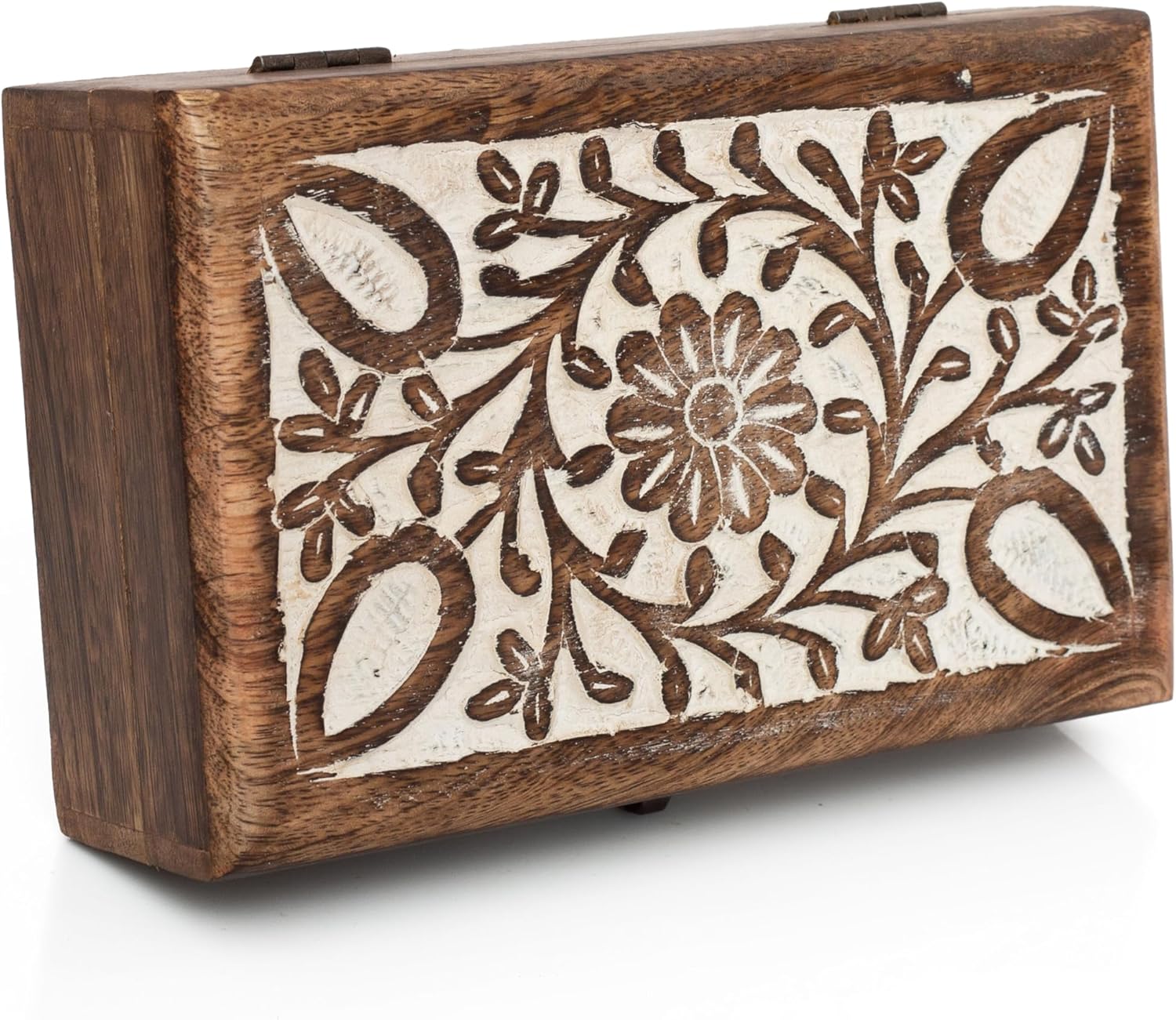 HIGH QUALITY: Strong hinges. Lasts forever. Rustic look & feel with a beautiful white antique finish, which sets this box apart. Stunning handmade plain box surface.