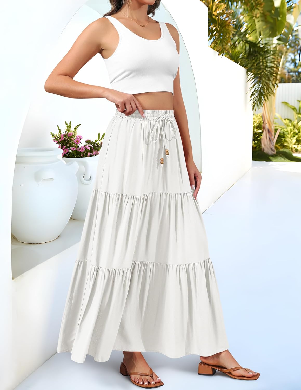 This maxi skirt is flowy and cute, perfect for daily life, beach, cruise, travel, vacation and summer parties! No anxiety about figure, this pleated tiered long skirt helps you modify and enhance the body shape! (Note: Model Size is M. Please watch the video to check this! ) Enjoy the summer!