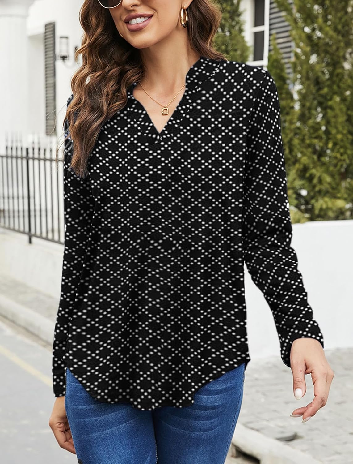 Ladies Tops and Blouses 3/4 Sleeve Long Tunic Tops to Wear with Leggings Tunic Blouses for Women 3/4 SleevePolka Dot Tops for Women