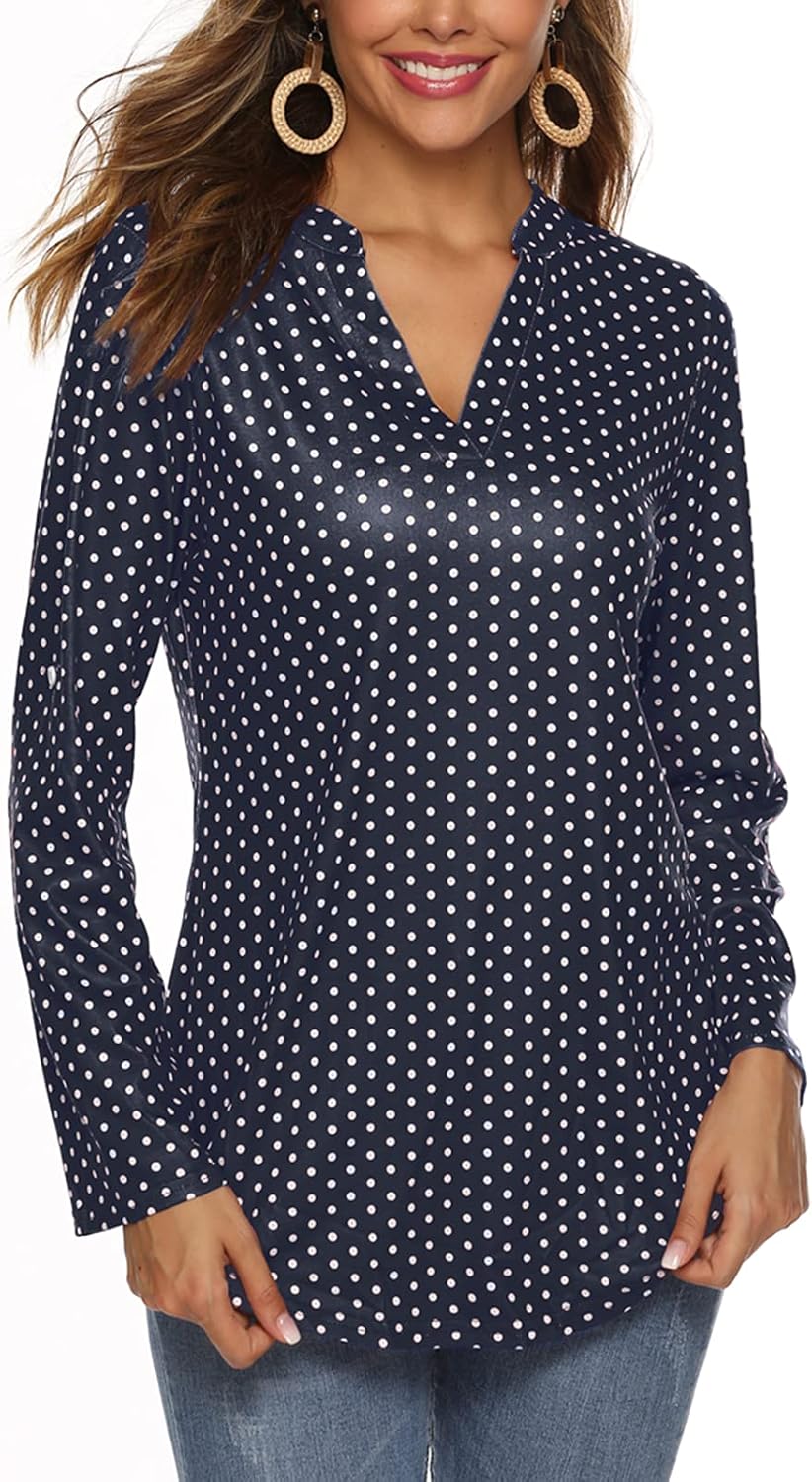Ladies Tops and Blouses 3/4 Sleeve Long Tunic Tops to Wear with Leggings Tunic Blouses for Women 3/4 SleevePolka Dot Tops for Women
