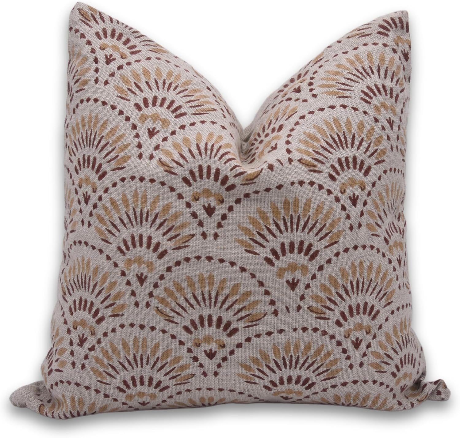 Handloom Block Print Thick Linen 18X18 Throw Pillowcase Cushion Cover with Zipper for Sofa Couch, Bed, Chair, Fall Decoration, Home Décor, Garden, Outdoor, Farmhouse, Living Room, Rust Red