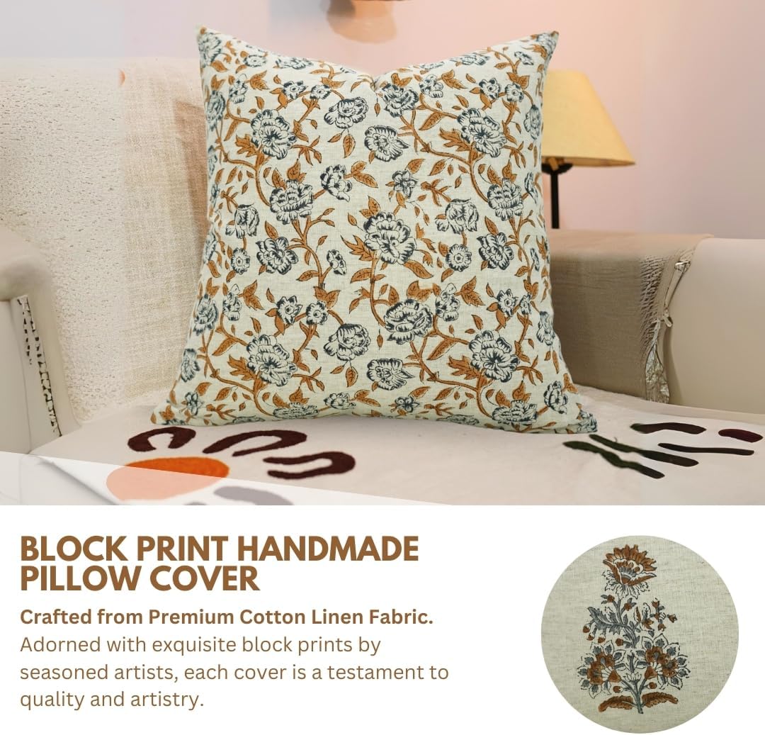 [IMPORTANT NOTE DRY CLEAN ONLY]: Ensure you dry clean as required to keep the handmade artistry of your pillow cover intact. The insert is not included, and colors may vary depending on the screen or light source. Block printing is a handmade art, ensuring slight variations as each pillow is crafted by hand with fresh flower and vegetable colors. Please cherish the handcrafted nature of this art.